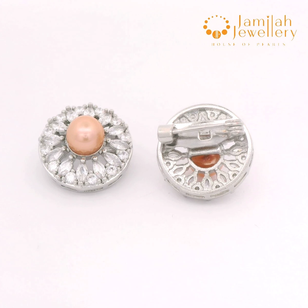 **Available in a variety of colors. Please contact us to check current stock availability.** Adorn yourself with this exquisite baby brooch, showcasing a peach color pearl. The pearl exhibiting a mes...  Read More