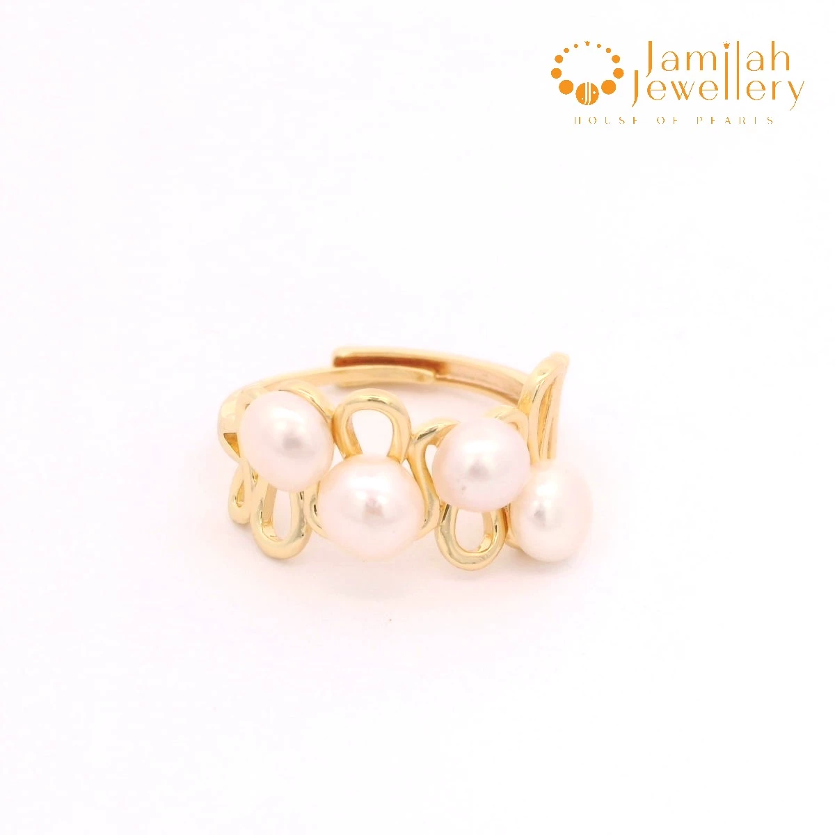 Indulge in the timeless elegance of this yellow gold multistone ring, beautifully set with luminous round pearl beads. This adjustable ring offers a comfortable fit, while the lustrous pearls, careful...  Read More