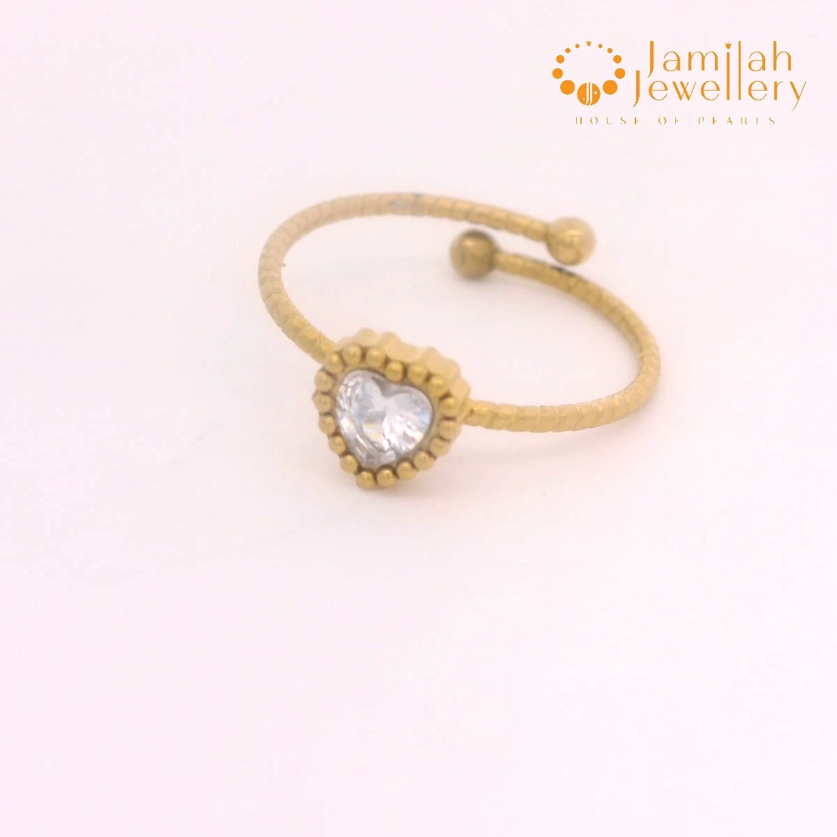 Yellow Gold Stainless Steel Ring Heart Shaped White Cubic Zirconia
