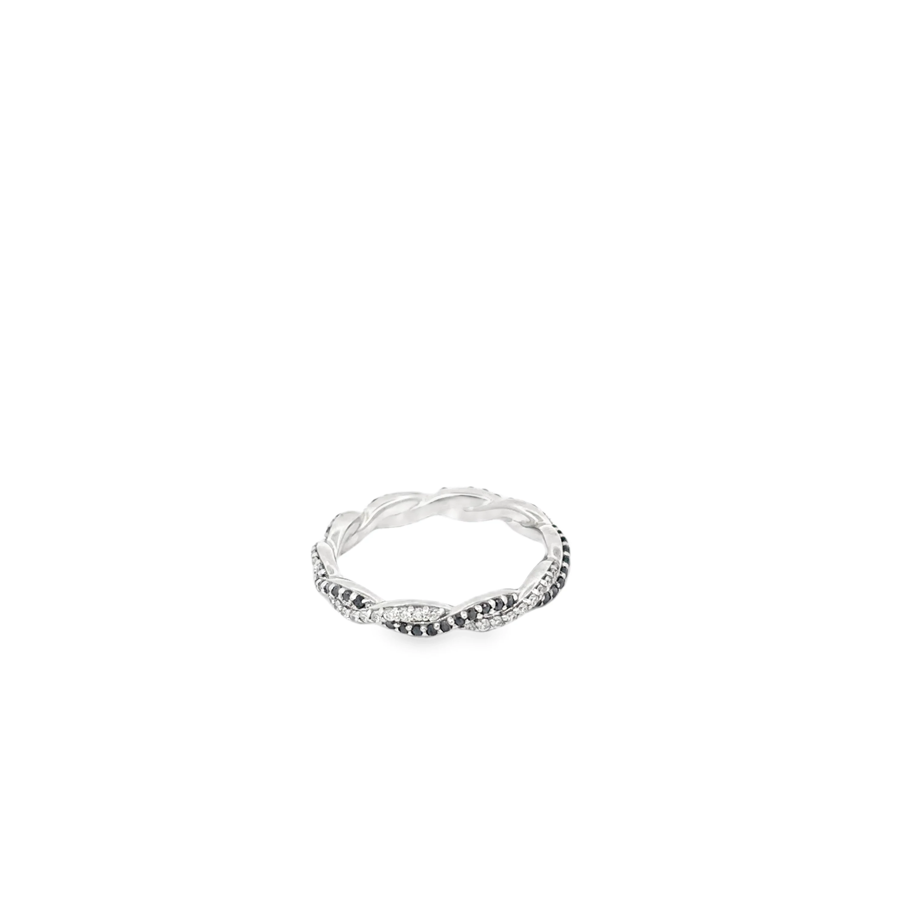 14K White Gold Black and White Diamonds Braided Eternity Band