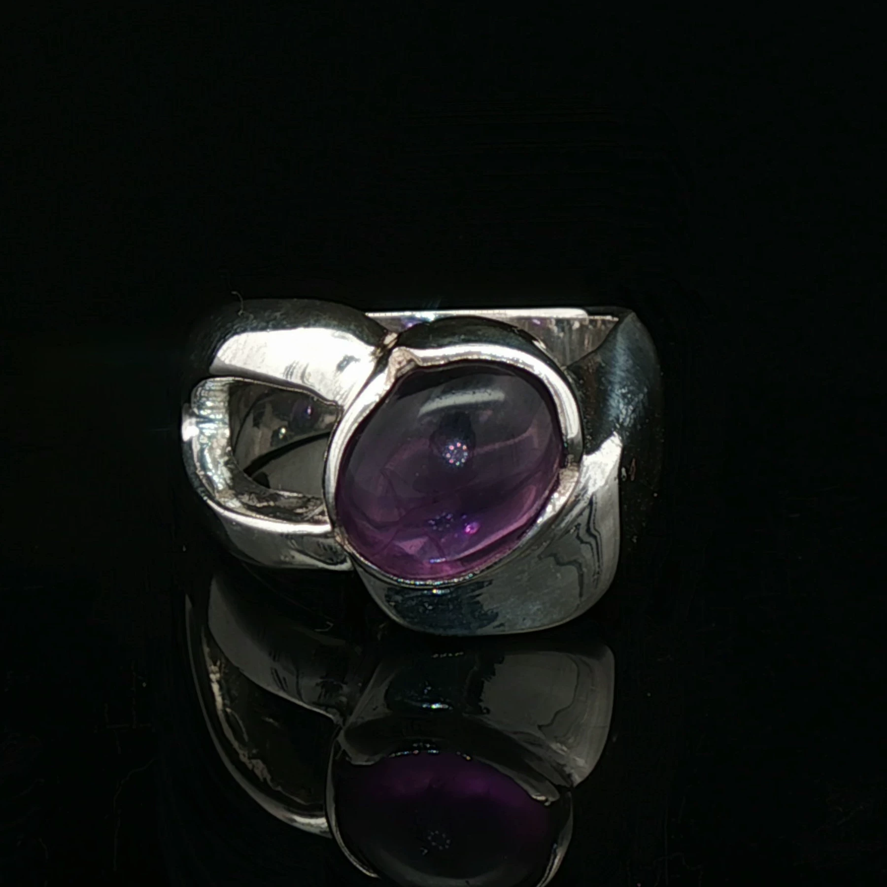 Sterling Silver Cocktail Ring with Cabochon Amethyst, size 6