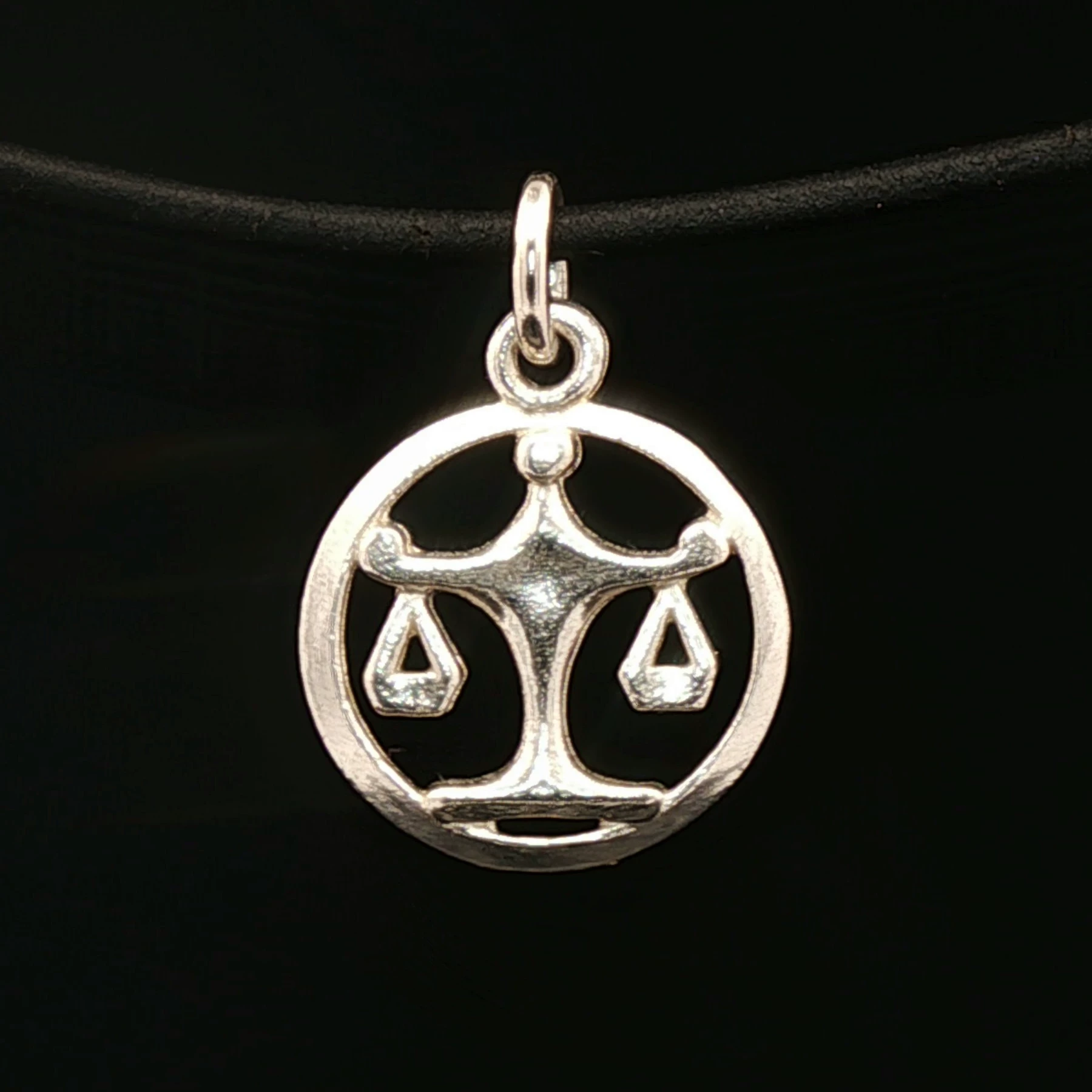 This silver pendant features the Libra zodiac sign. The design incorporates the scales of justice within a circular frame, symbolizing balance and harmony. This piece is perfect for astrology enthusia...  Read More