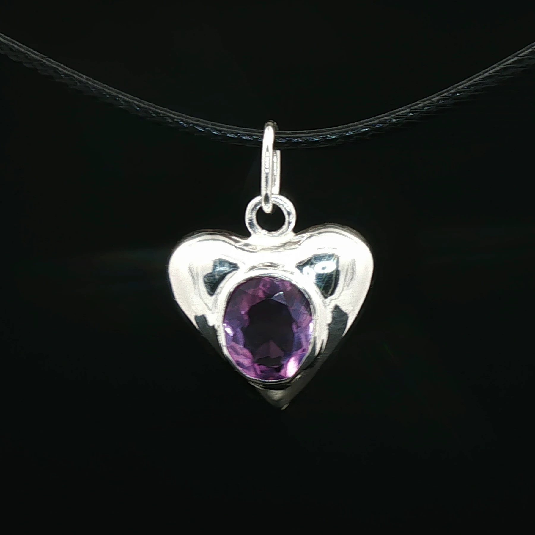 Heart Pendant with 10x8mm Amethyst in Sterling Silver