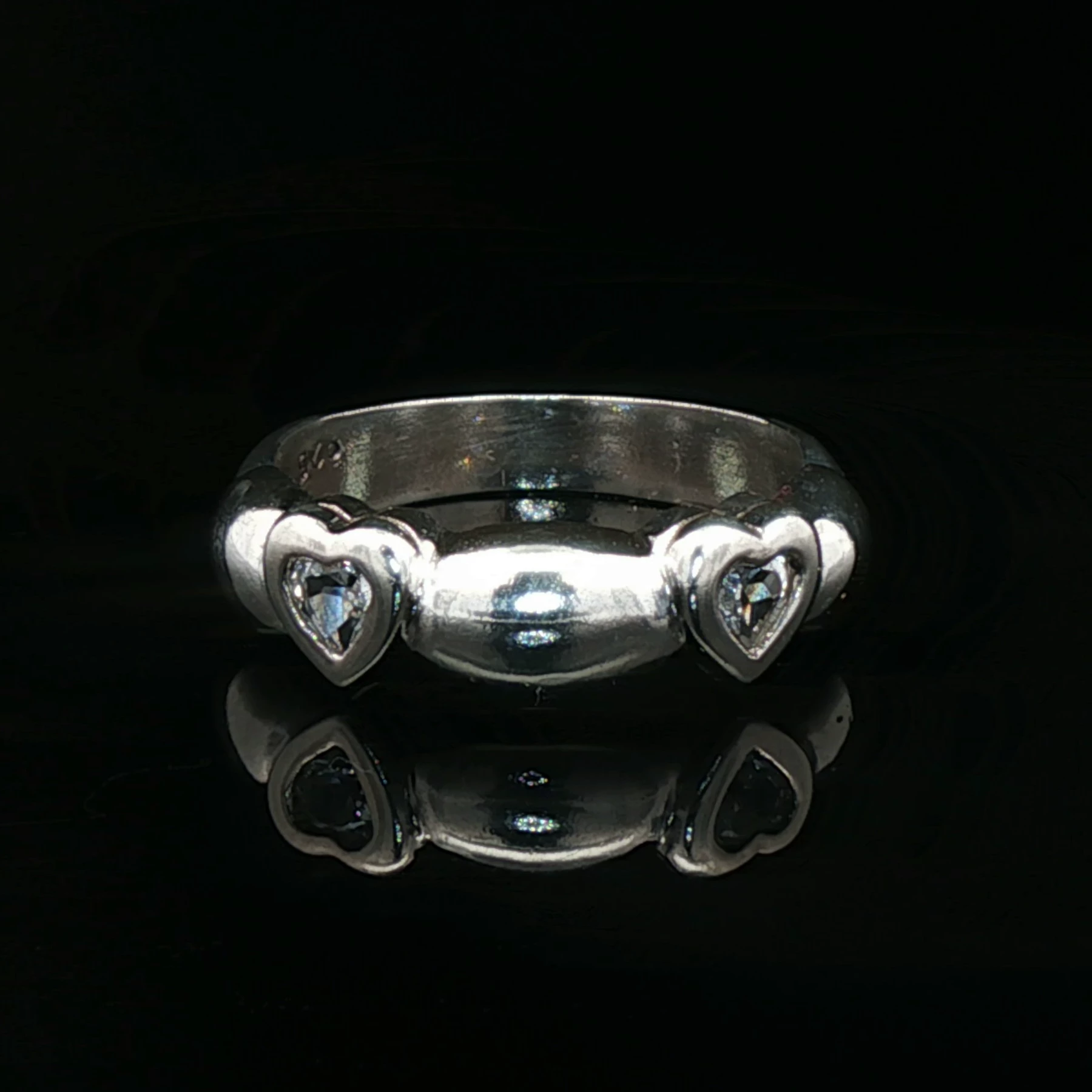 Sterling Silver Heart Motif Band Ring with Cubic Zirconia, size 6.25