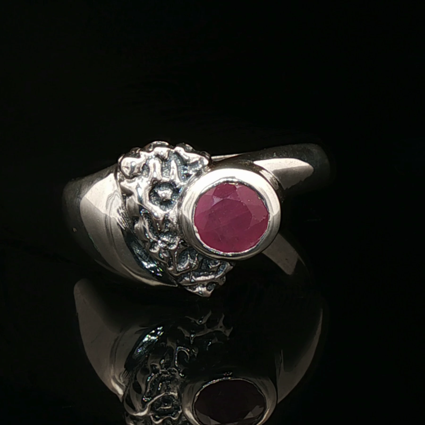 Sterling Silver Textured Geometric Ring With Faceted Ruby, size 8.5