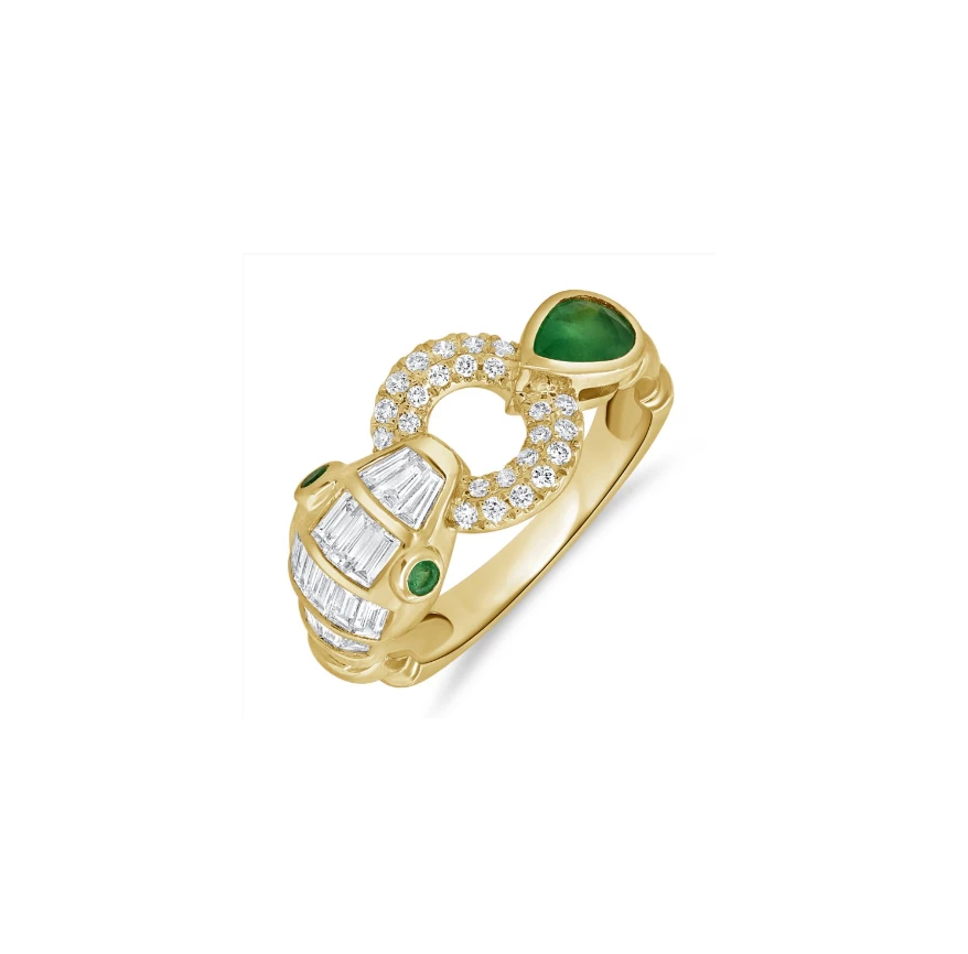 EMERALD, BAGUETTES & DIAMOND SNAKE RING