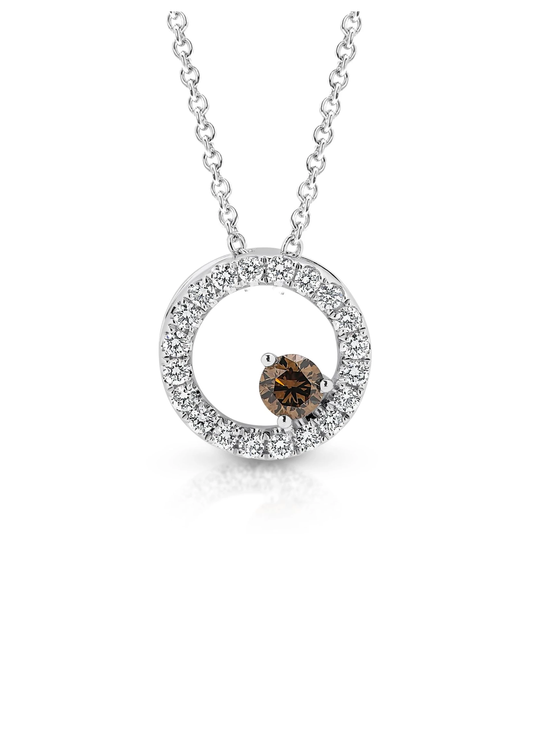 9K White Gold Necklace with Chocolate Diamond=0.15CT C6/SI & Diamonds=0.20CT GH/SI