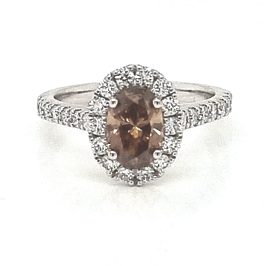 18K White Gold Ring with Fancy Colour diamondx1=1.13CT C6/SI1 Rio Tinto Report No #RTARG107800, Diamondx14=0.35CT GH/SI & Diamondx14=0.37CT GH/SI