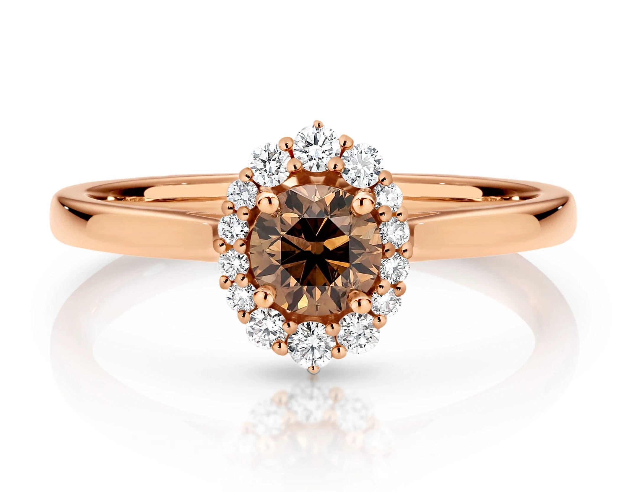 9K Rose Gold Ring with Chocolate Diamond=0.59CT C5/VS1 Cert No:C4629 & Diamonds=0.16CT H/SI