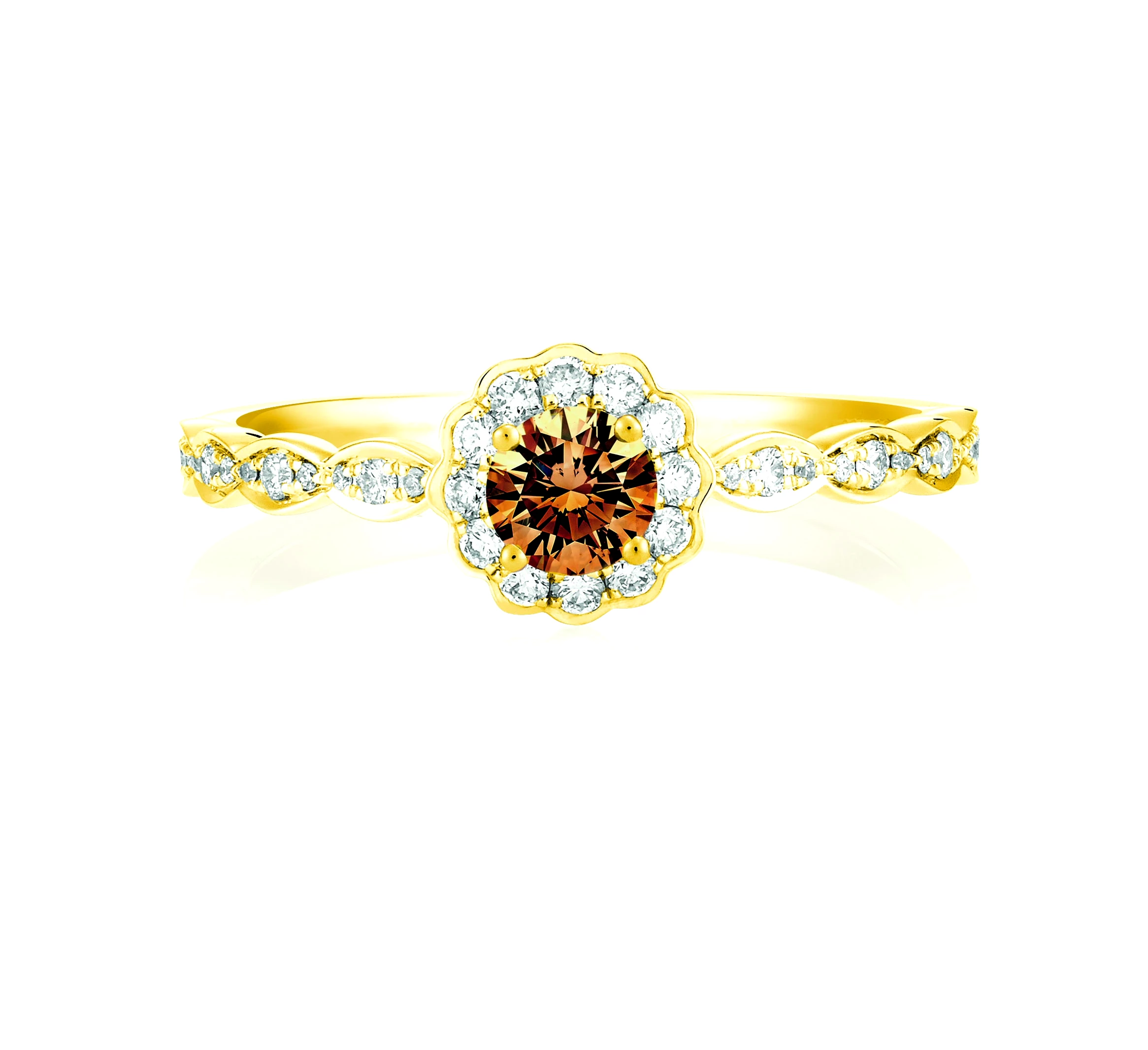 18K Yellow Gold Ring with Chocolate Diamond=0.30CT C5/SI & Diamonds=0.23CT GH/SI