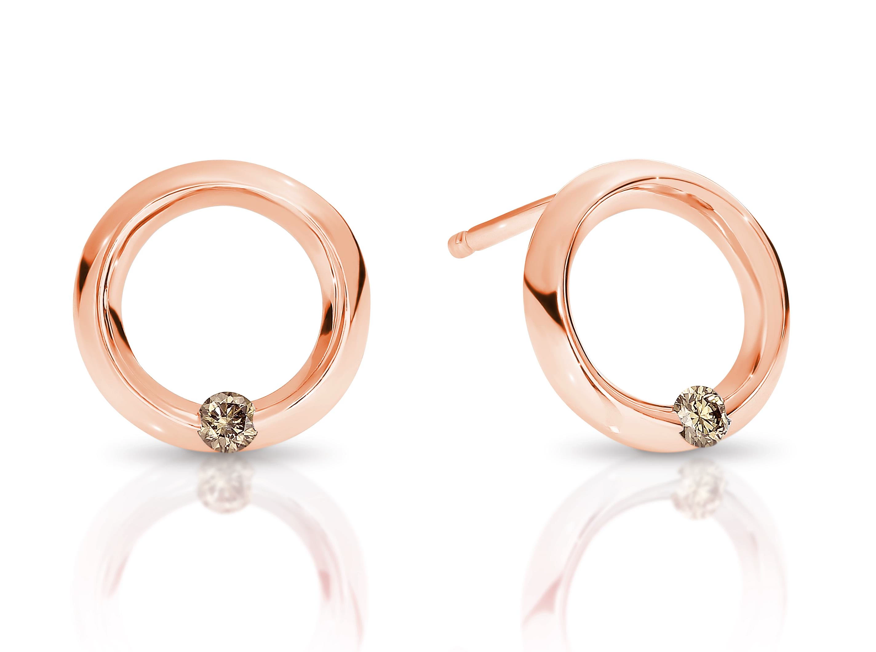 9K Rose Gold Stud Earrings with Chocolate Diamondx2=0.06CT C6/SI