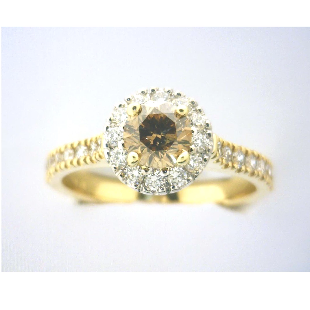18K Yellow and White Gold Ring with Chocolate Diamondx1=0.59CT C5/SI2 & Diamonds=0.45CT GH/SI