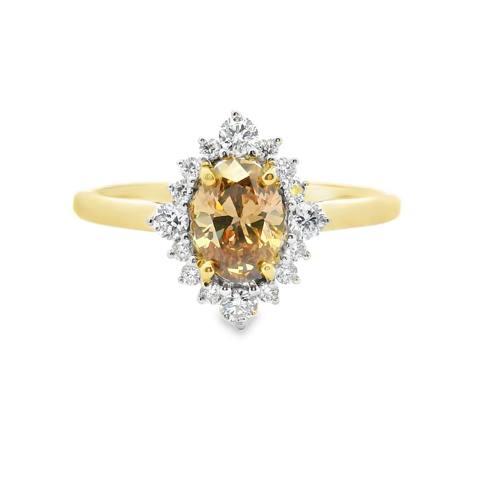 9K Yellow and White Gold Ring with Chocolate Diamond=0.71CT C5/VS2 Report No C4643 & Diamonds=0.28CT GH/SI
