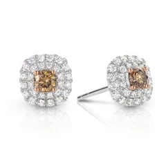 18K White and Rose Gold Earrings with Chocolate Diamondx2=0.20CT C5-C6/SI & Diamonds=0.33CT H/SI
