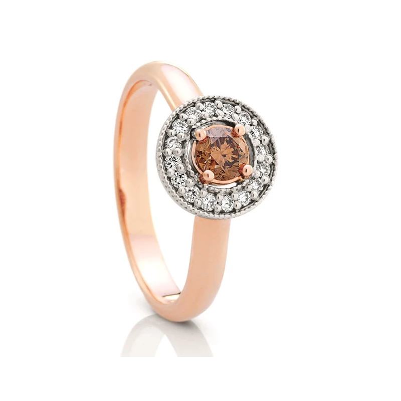 9K Rose and White Gold Ring with Chocolate Diamond 0.31CT C6/SI & Diamonds=0.12CT GH/SI