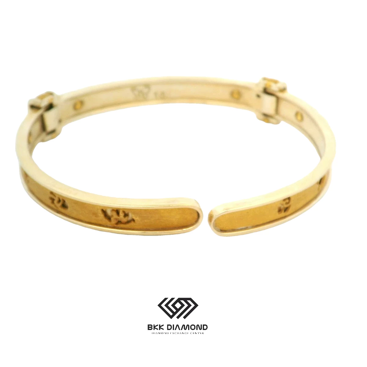 Adorn your wrist with this beautifully crafted gold bracelet, featuring intricate zodiac symbols etched around its sleek design. Perfect for any occasion, it adds a touch of personalized elegance to y...