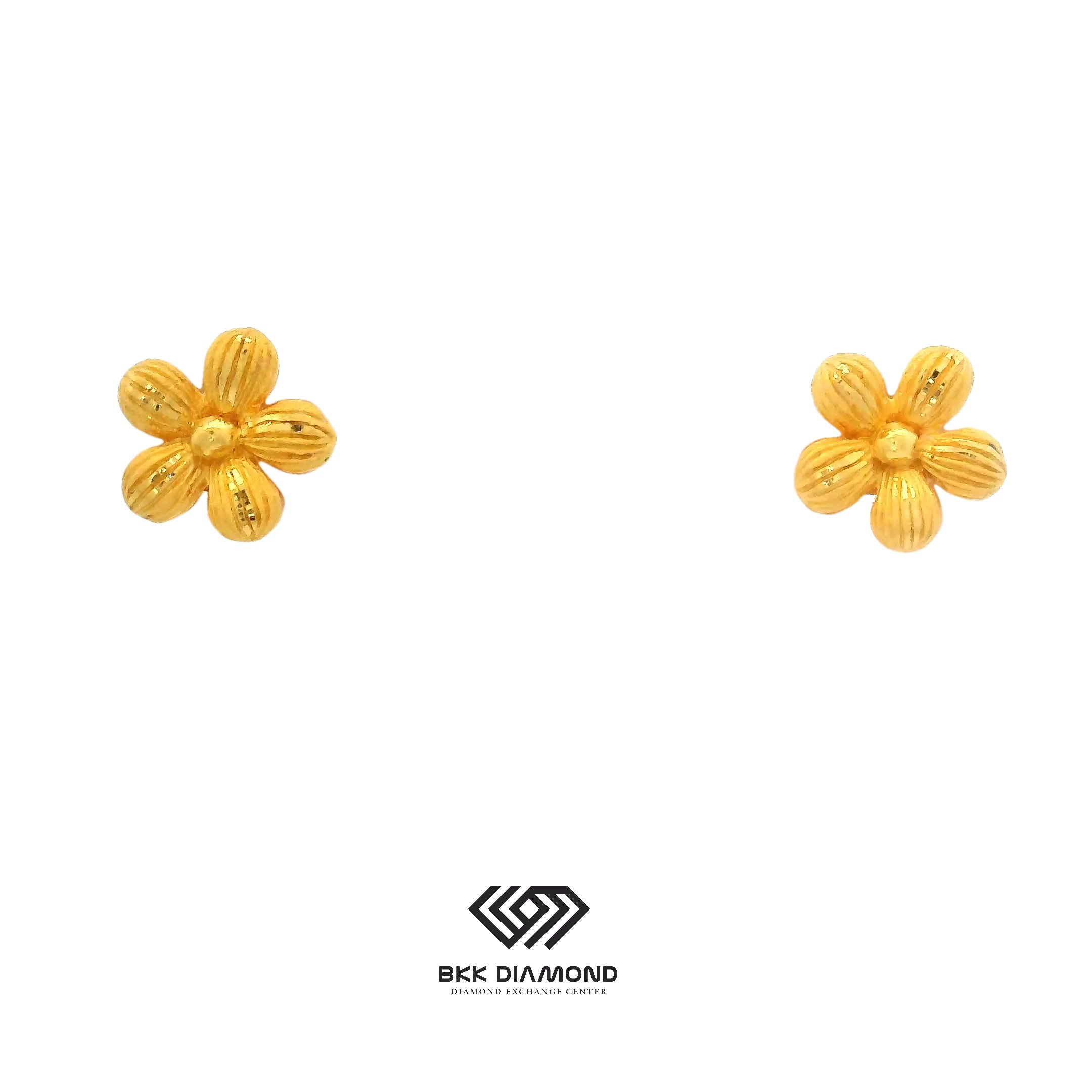 Adorn your ears with these exquisite floral earrings. The intricate design captures the essence of a blooming flower, offering an elegant touch to any outfit. ต่างหูทองคำเจือ 99.99% น้ำหนัก 0.79 กรั...