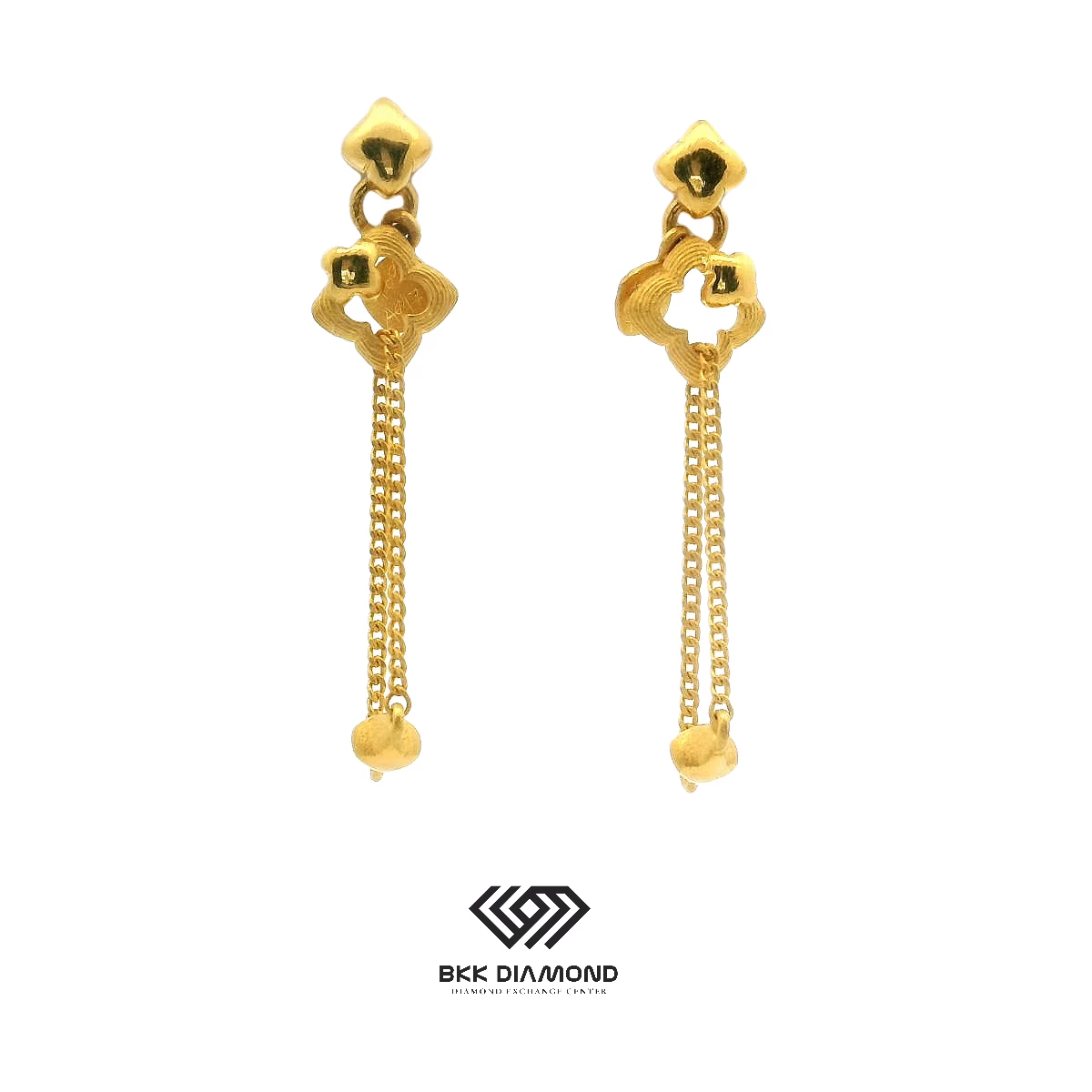 These stunning gold dangle earrings feature intricate floral designs with delicate chain details. Perfect for adding a touch of elegance to any outfit, they are crafted to reflect light beautifully an...