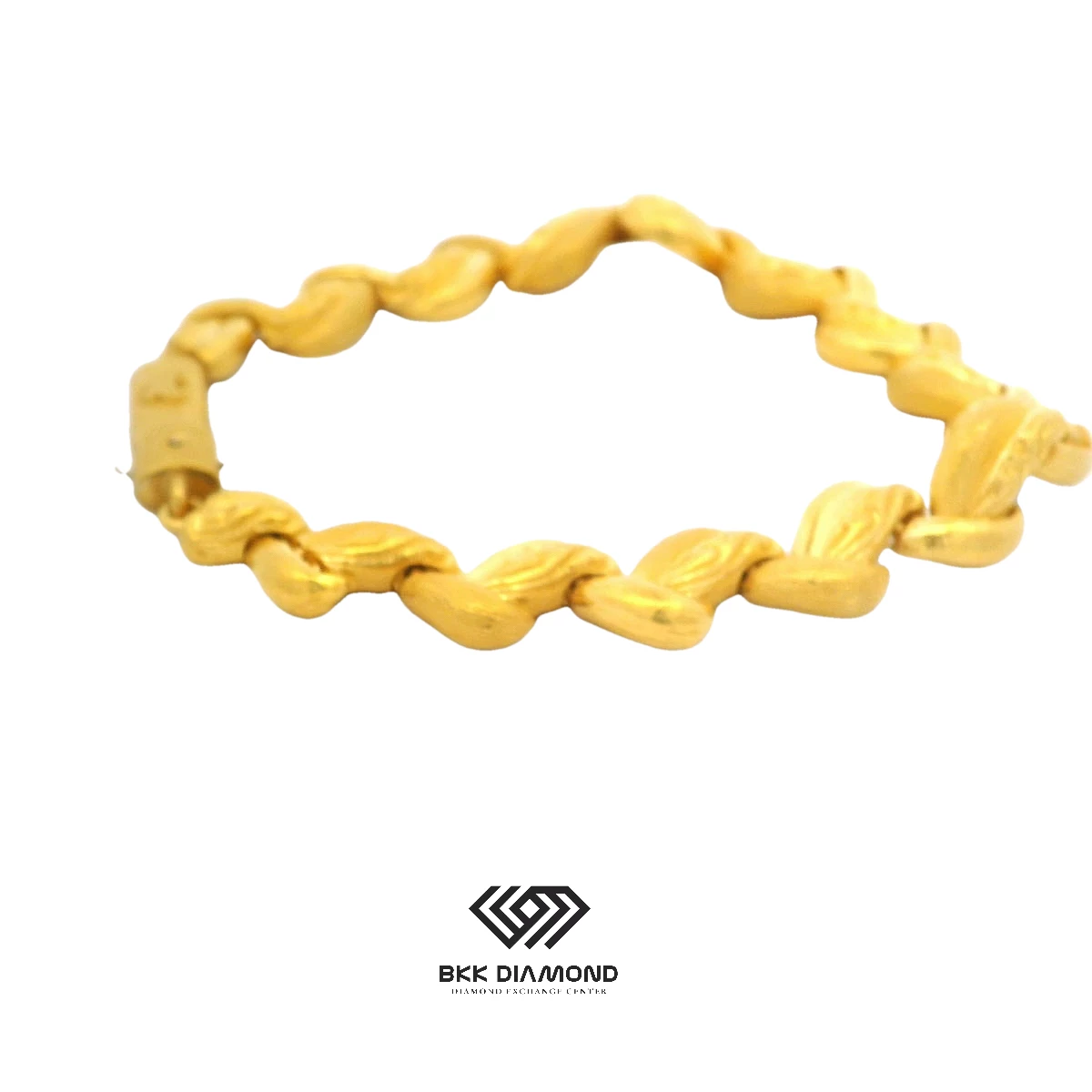 This stunning gold bracelet showcases intricate craftsmanship with its unique, chunky design. Perfect for making a bold statement, this accessory is ideal for both casual and formal occasions. สร้อยข้...