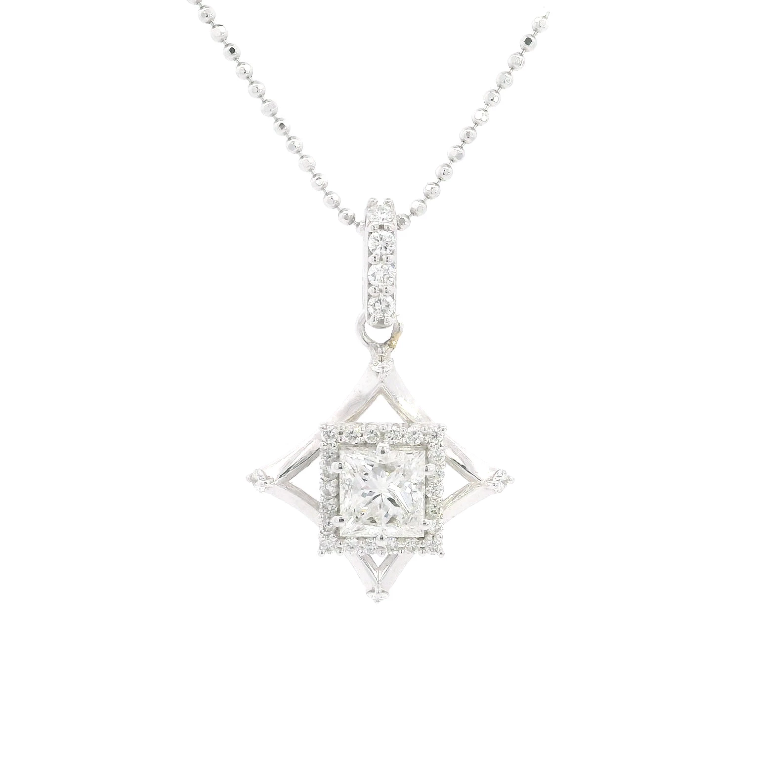 Elevate your style with this exquisite pendant. Featuring a princess cut diamond set in a lustrous 18K white gold setting, this design exudes sophistication and timeless elegance. The clarity and exce...