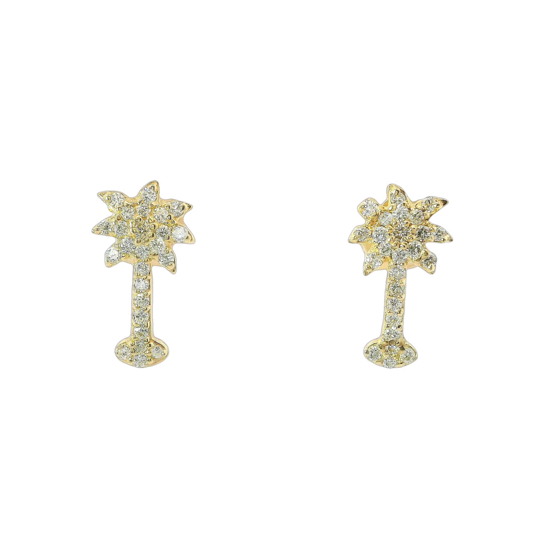 These fun palm tree stud earrings feature .28 cts of diamonds set in highly polished 14K yellow gold. Each palm tree is embellished with white round shaped diamonds exhibiting a brilliant cut arranged...