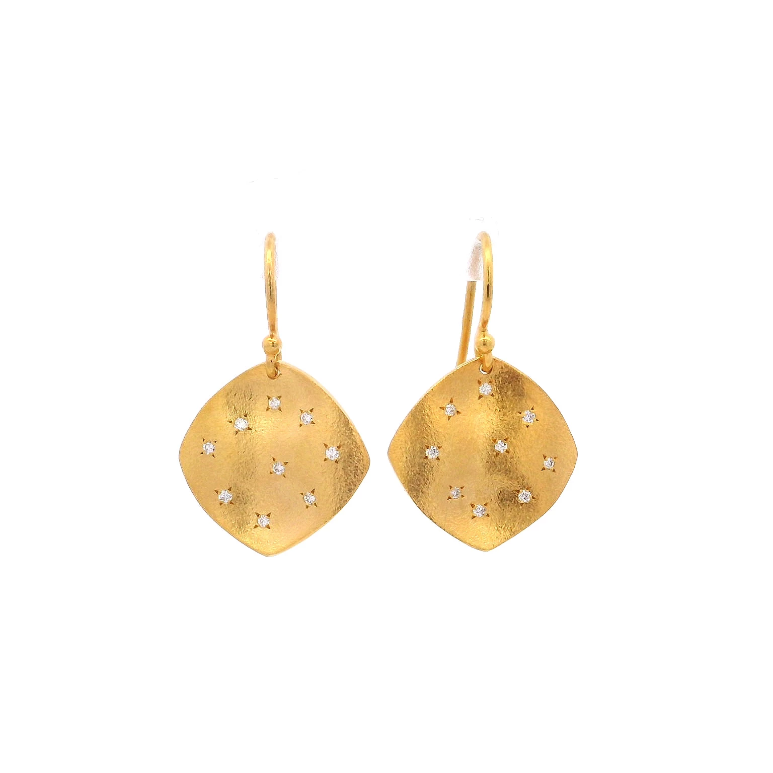 Elevate your style with these dangle earrings, meticulously crafted in radiant 14K yellow gold. Each earring features a delicate arrangement of brilliant round cut diamonds adding a touch of sparkle t...