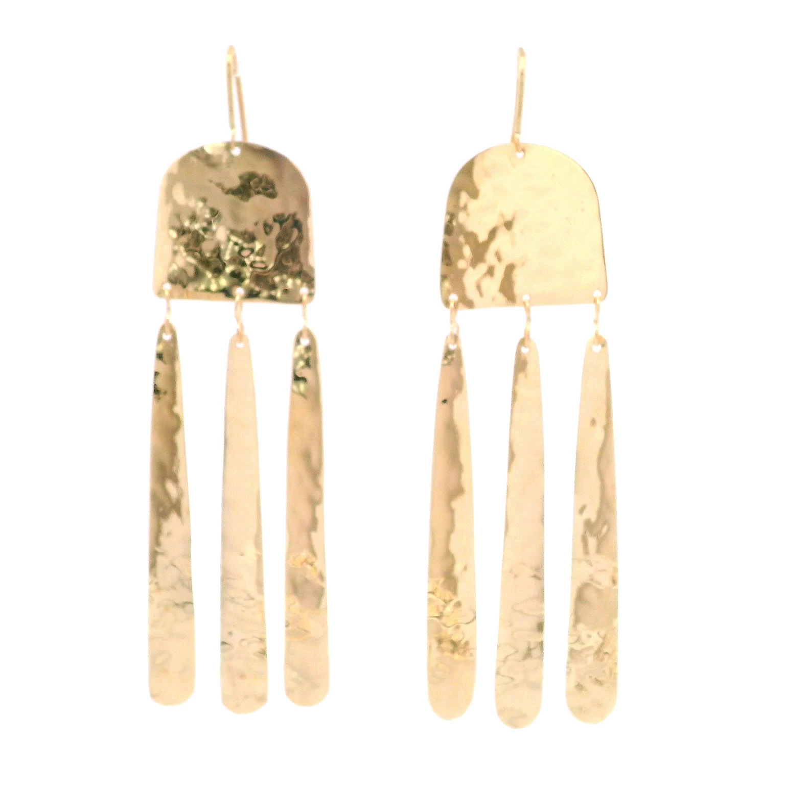 Elevate your style with these striking dangle earrings. Crafted from lustrous 18K yellow gold, these earrings feature a hammered texture design adding depth and character. The elongated dangles sway g...