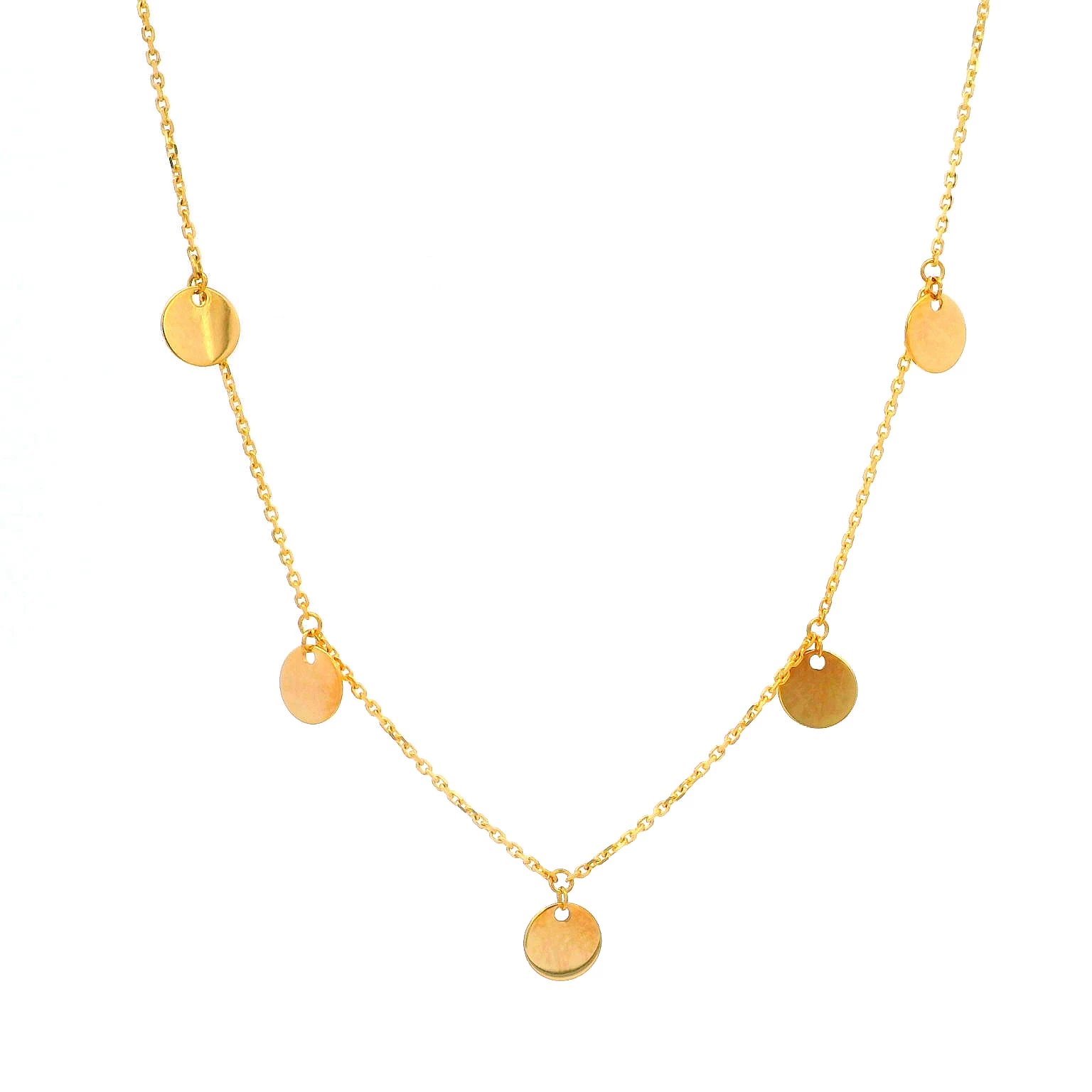 Elevate your style with this delicate 14K yellow gold necklace. This minimalistic design features evenly spaced disks that catch the light with every movement. Perfect for layering or wearing alone, t...