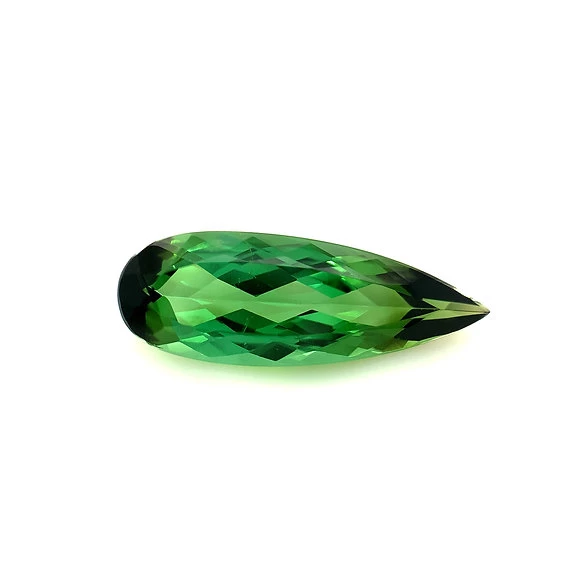 This pear-shaped heated green tourmaline is a beautiful green tourmaline that is in the pear shape. It is 3.27cts and has a clarity of VVS. It is a great gemstone for a ring or a necklace.