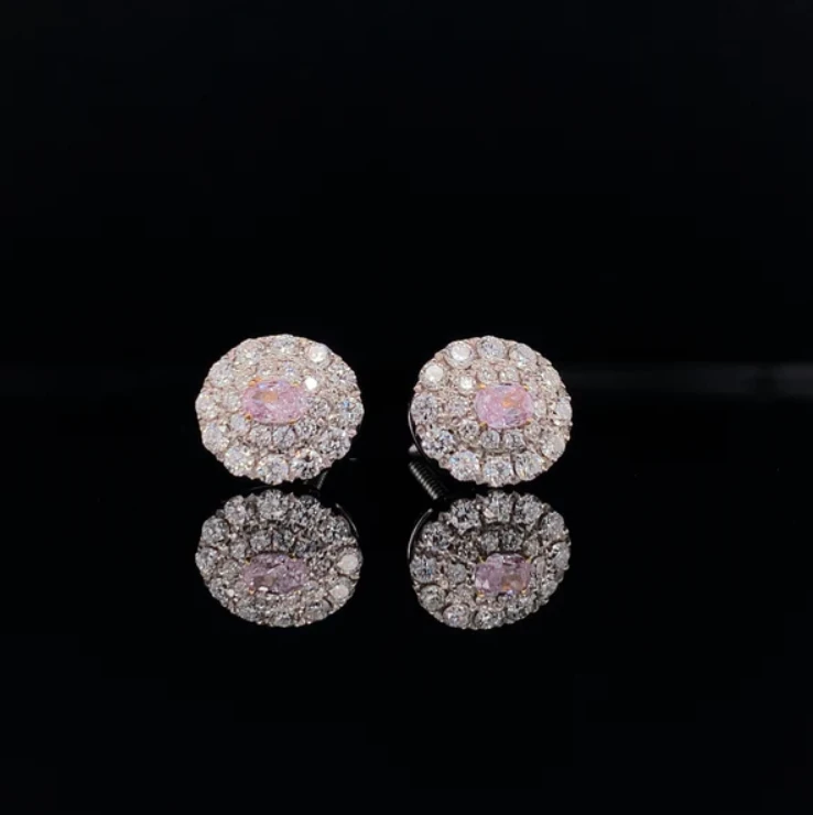 This stunning pair of pink diamond double halo earrings has been magnificently crafted in 18k white gold. Featuring two gorgeous pink diamonds totalling 0.199 carats and 44 diamonds totalling 0.544 ca... Read More