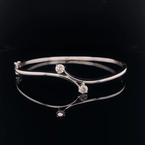 This double diamond curve bangle has been masterfully crafted in 18k white gold. This exceptional bangle features 2 diamonds totalling 0.425 carats. Stylish and elegant this bangle is perfect for ever... Read More