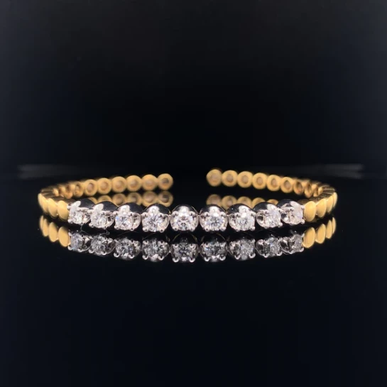 This masterfully crafted 18k white and yellow gold nine diamond bangle features nine stunning round brilliant cut diamonds totalling 0.96 carats. This bangle stands out from the crowd!