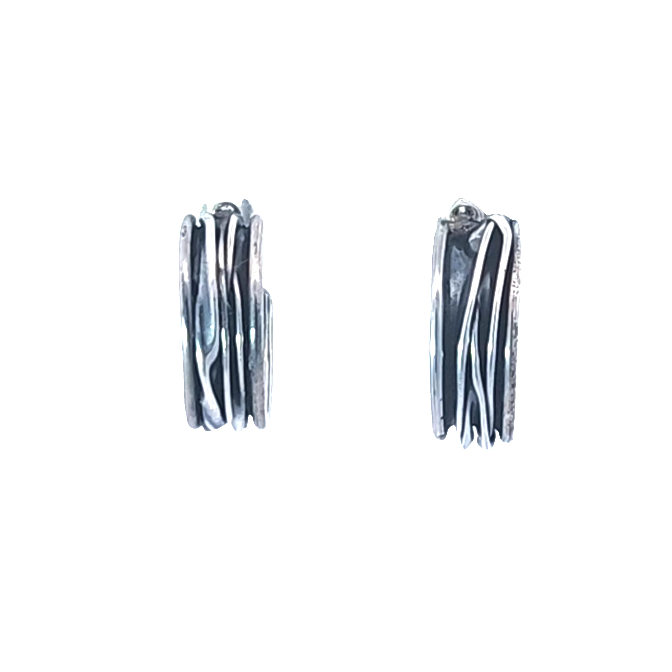 Embrace artistic elegance with these contemporary sterling silver hoop earrings. Their textured design features striking vertical lines, creating a bold, sculptural statement. Lightweight and comforta... Read More