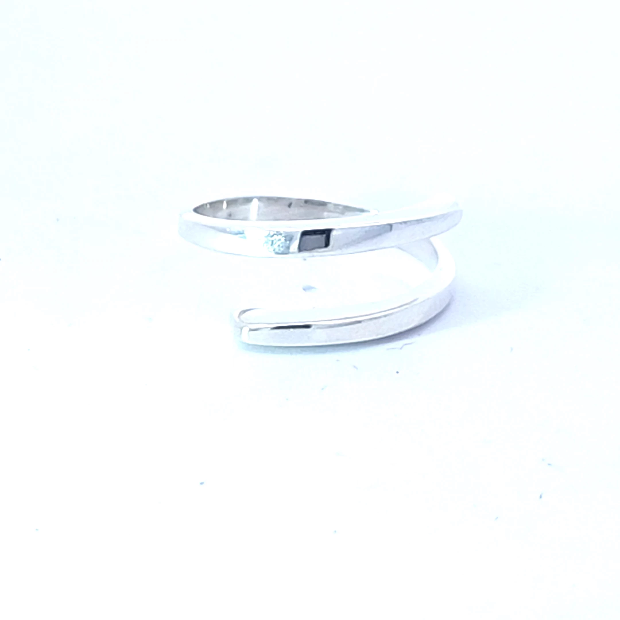 Elevate your everyday style with this contemporary silver band ring. The minimalistic design is crafted in a sleek, twisted silhouette, fashioned from high-polished white gold plated silver. A brillia... Read More
