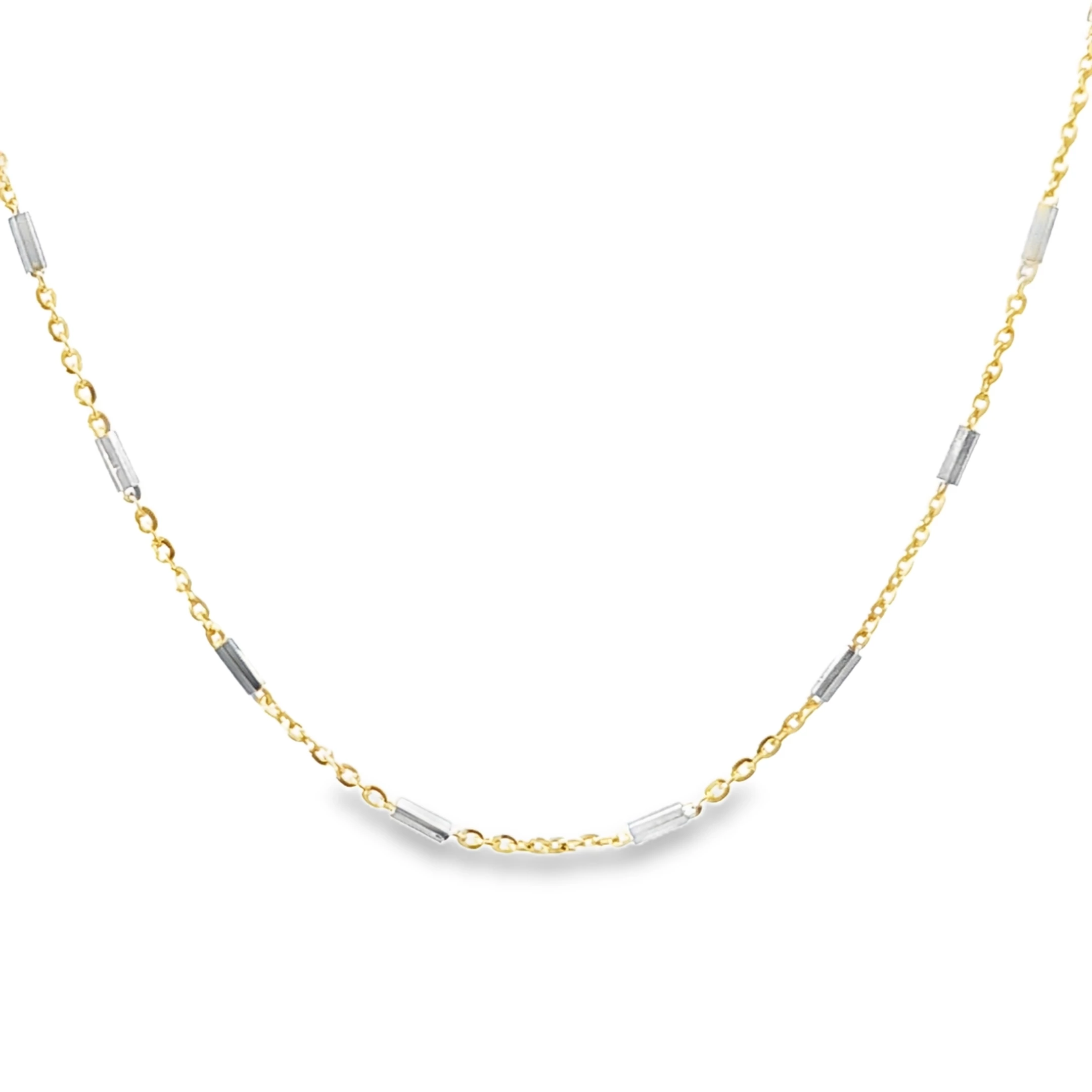 Elevate your style with this delicate yellow gold chain necklace. Crafted from precious gold, this fine chain features minimalist metallic accents and embodies understated luxury. Its subtle shimmer e...  Read More