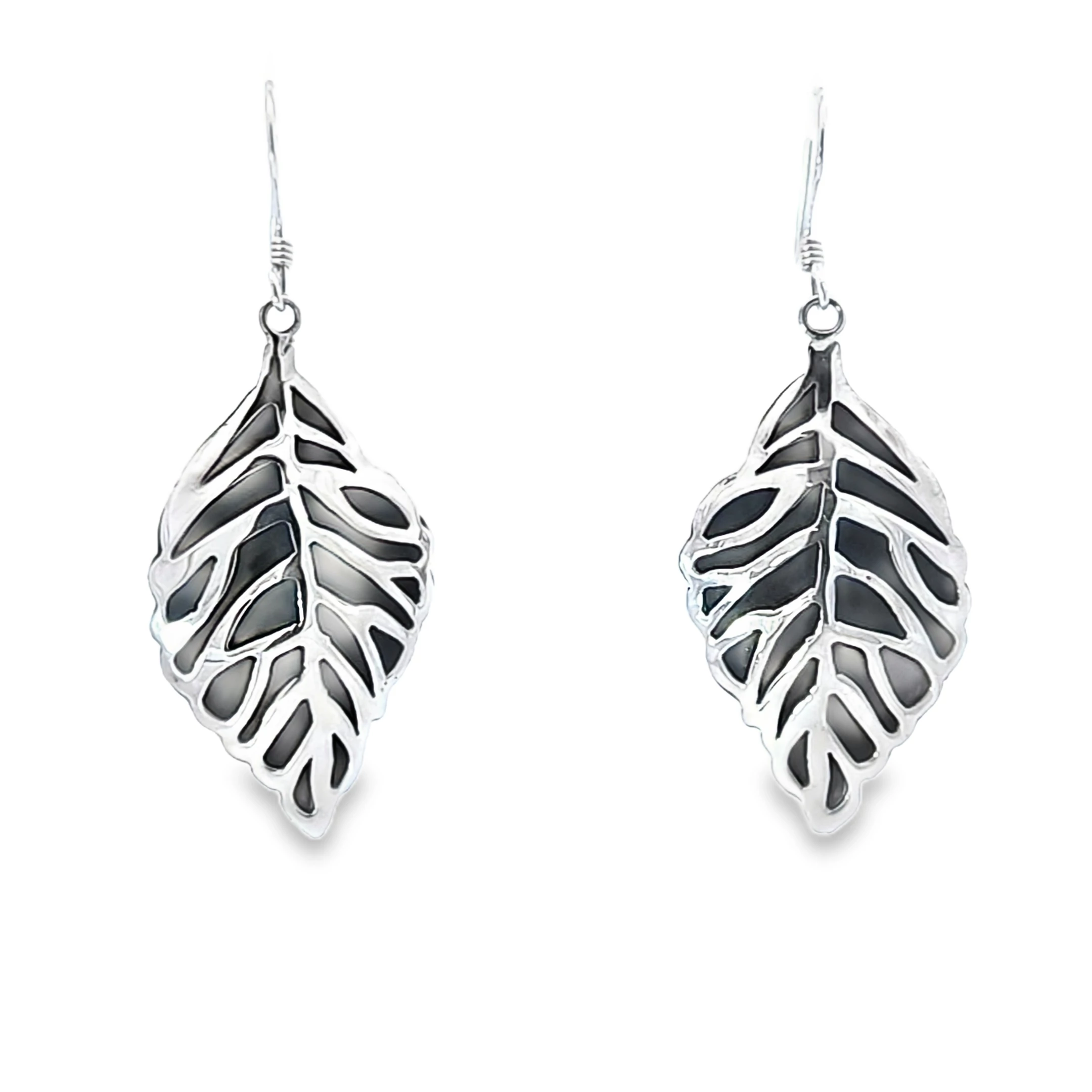 Elevate your style with these elegant sterling silver dangle earrings. The 3D leaf-shaped design features intricate cutouts, creating a captivating silhouette that catches the light with every movemen...  Read More