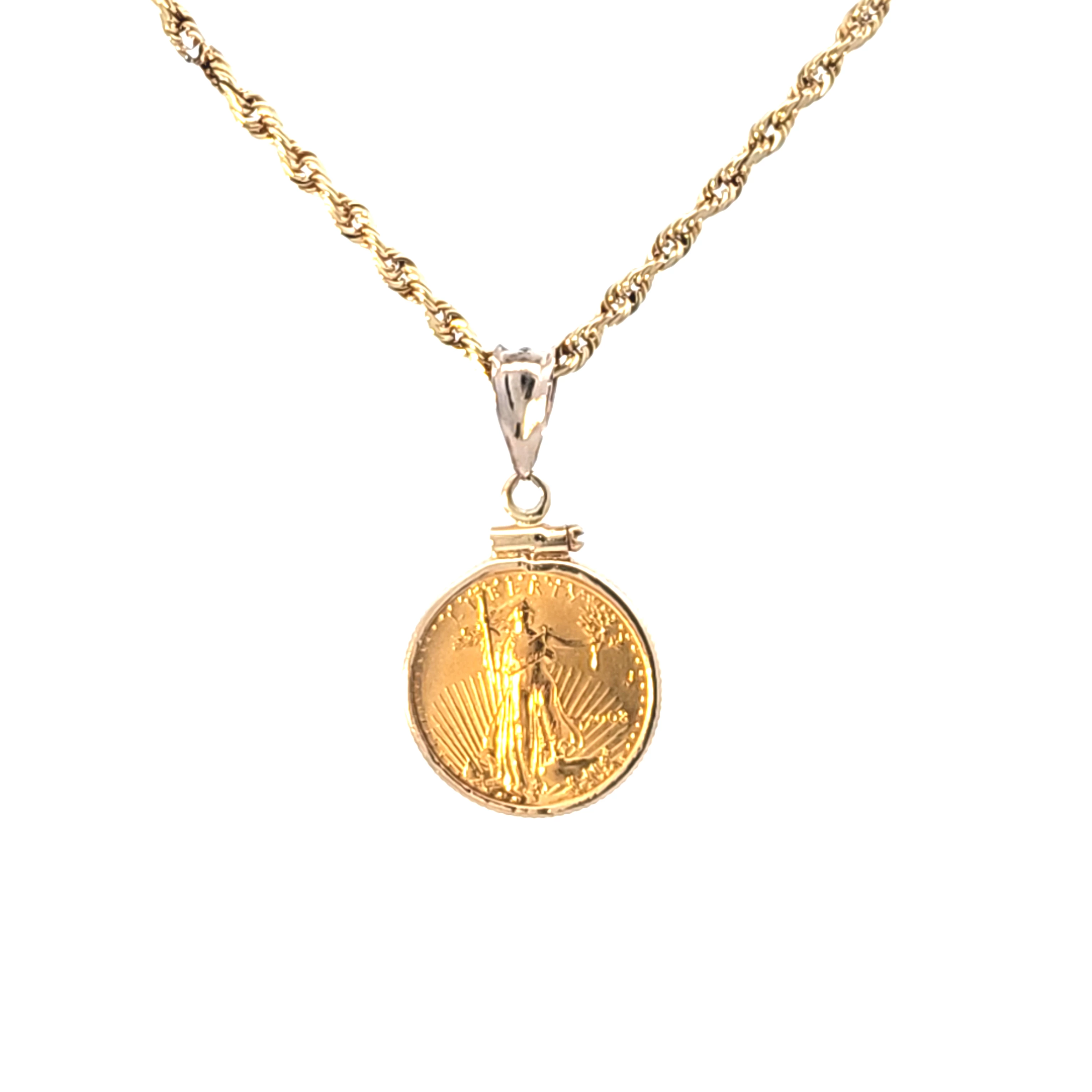 Elevate your style with this exquisite yellow gold charm necklace. The intricate detailing and radiant gold hue create a timeless piece. With symbolic imagery and meticulously crafted words, this neck... Read More