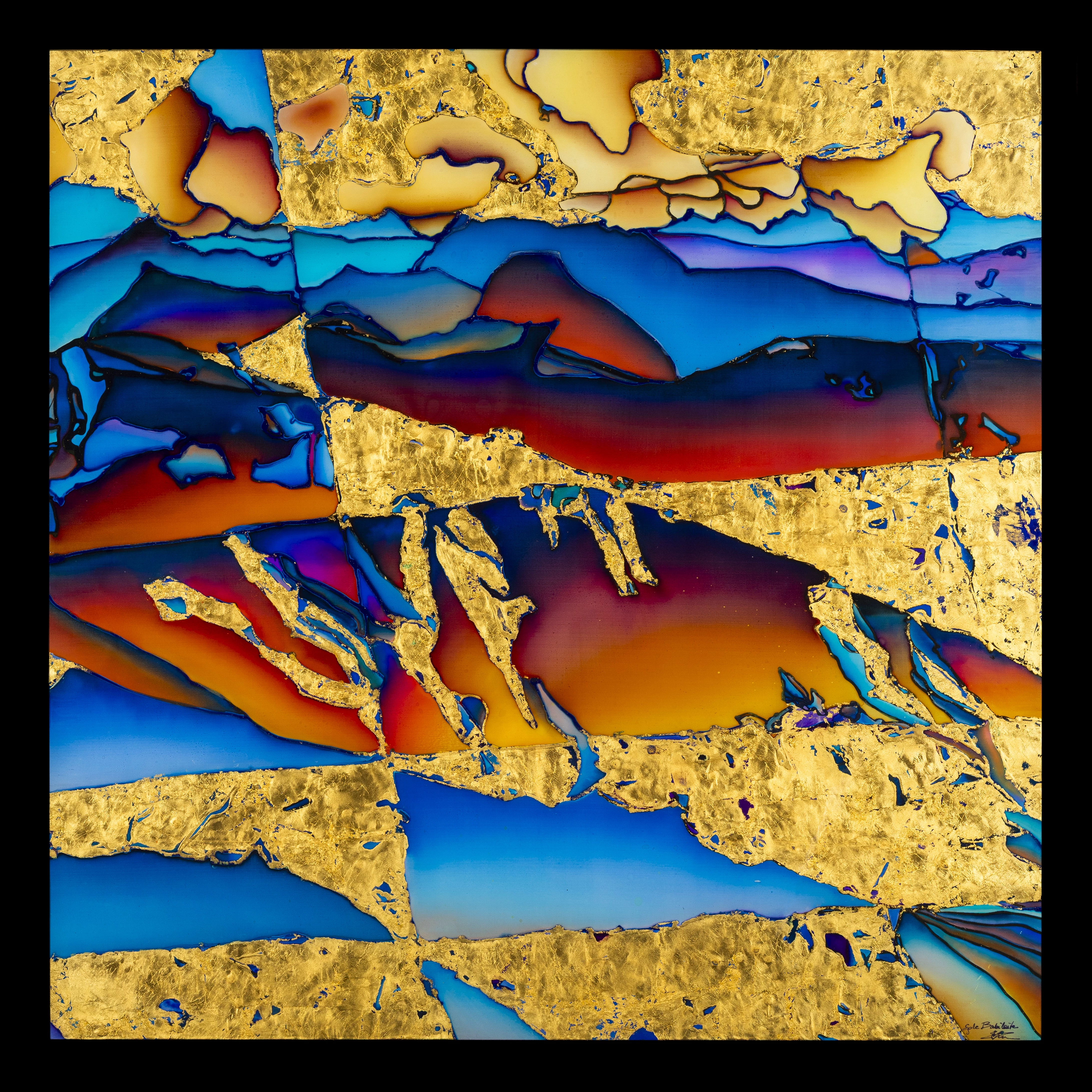 Author's technique,silk painting, 24 Karat gold plated, clear epoxy resin