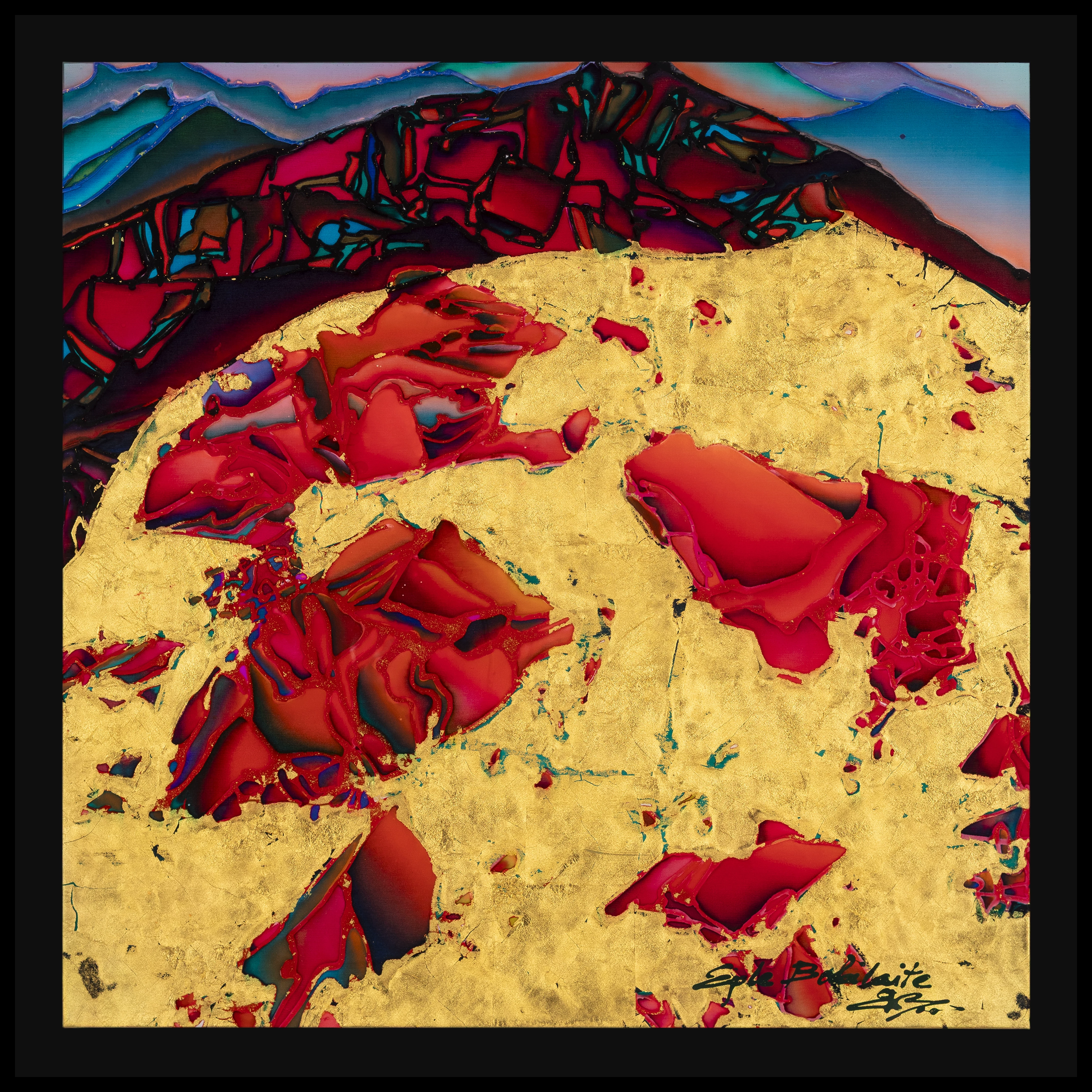Author's technique,silk painting, 24 Karat gold plated, clear epoxy resin