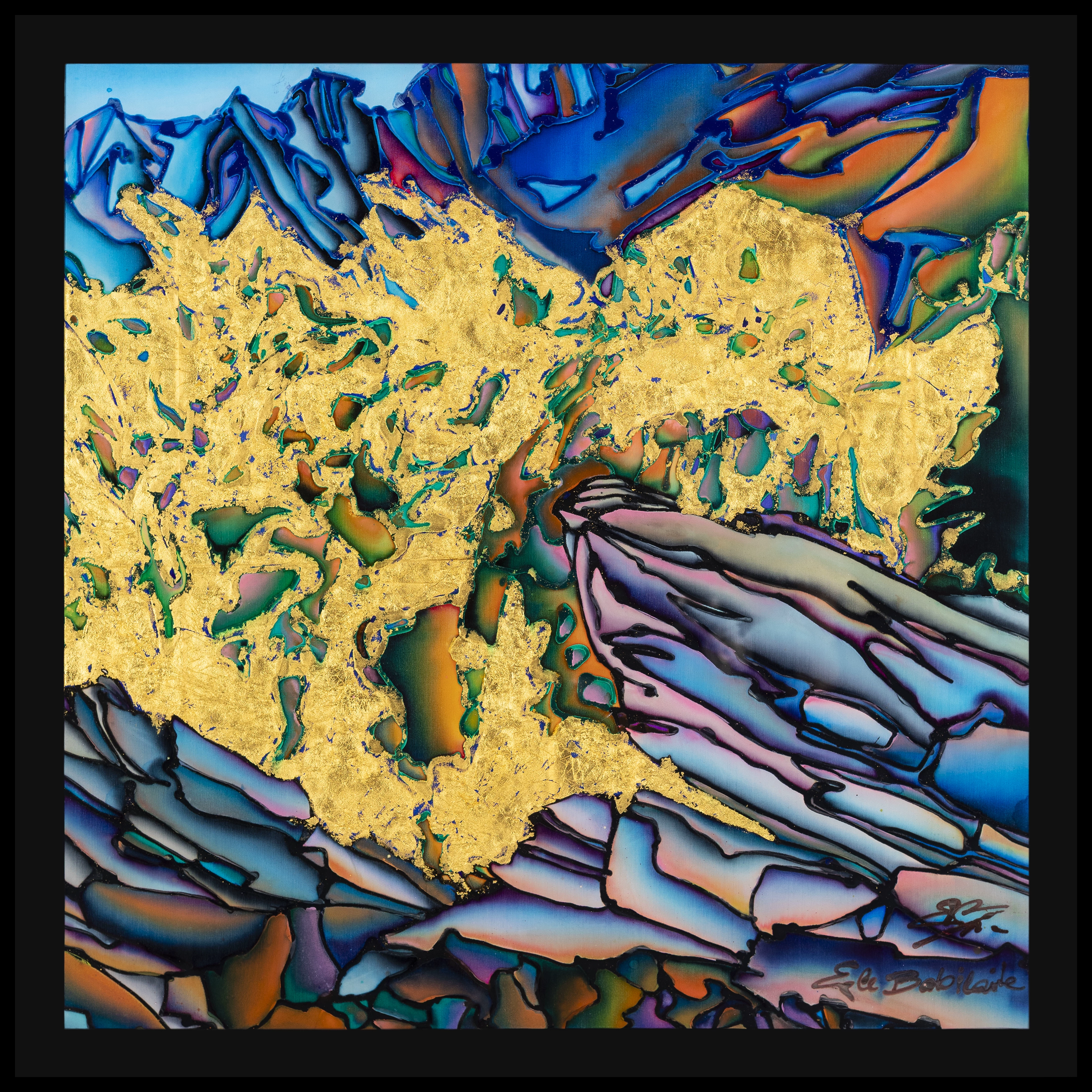 Author's technique,silk painting, 24 Karat gold plated, clear epoxy resin