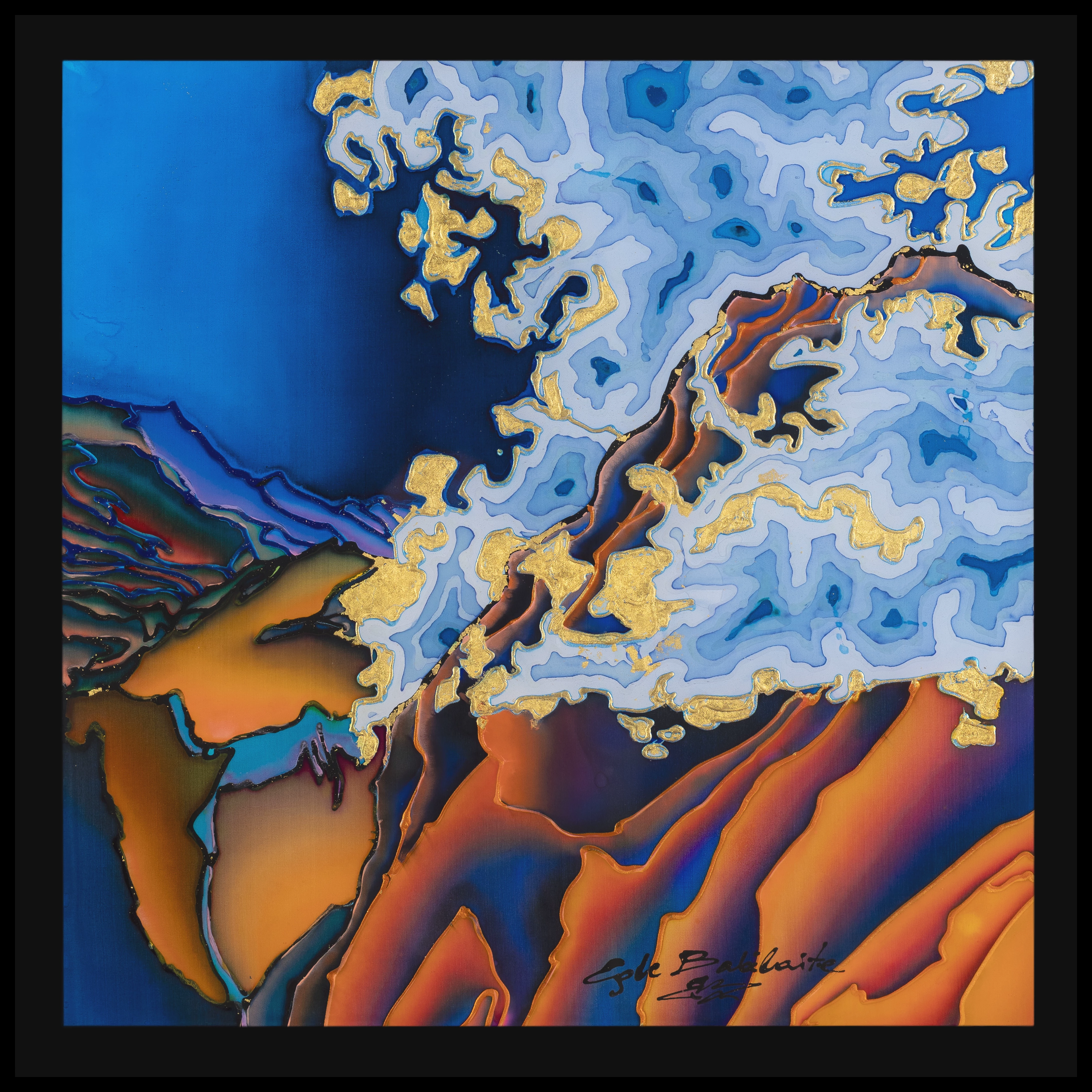 Author's technique,silk painting, 24 Karat gold plated, clear epoxy resin