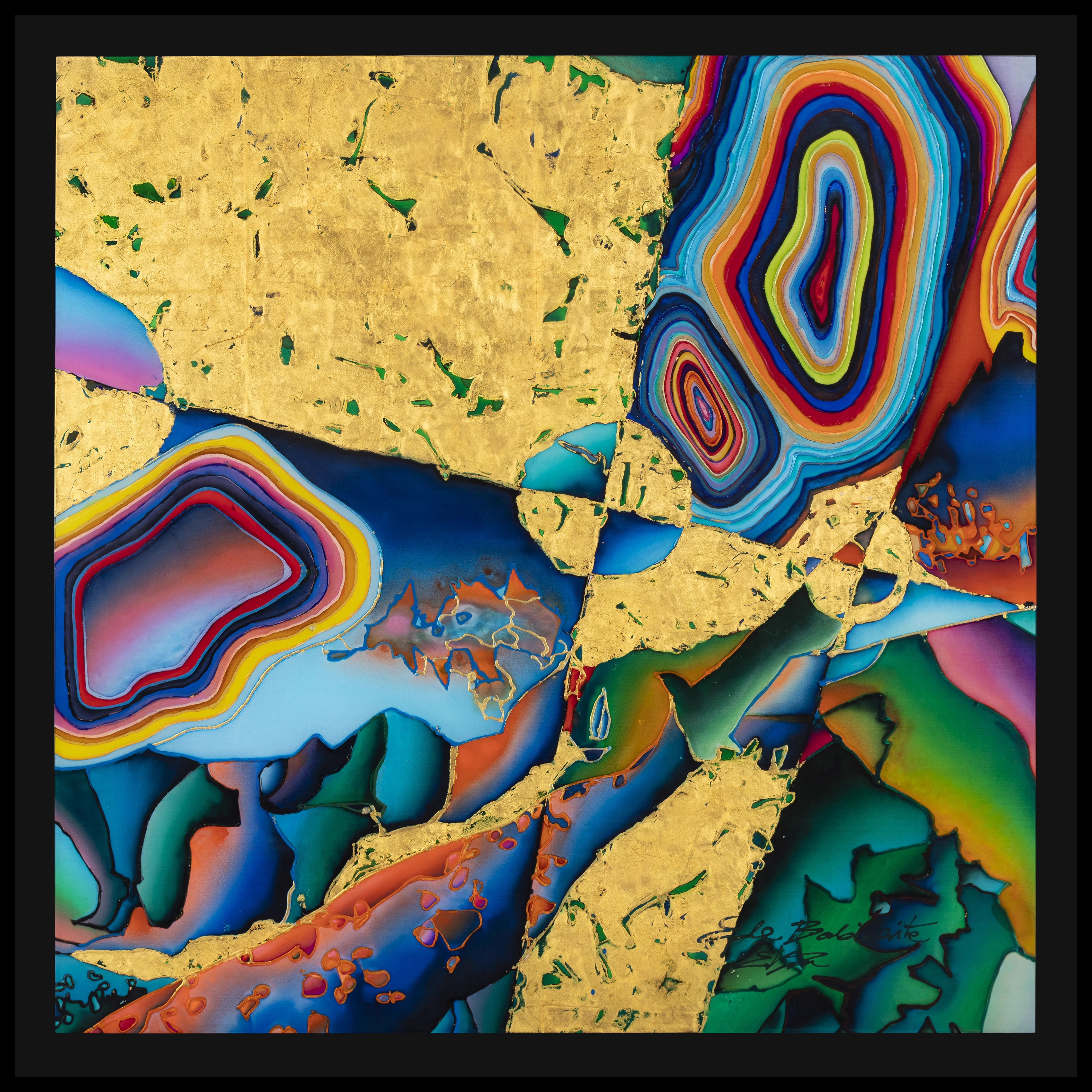 Author's technique,silk painting, 24 Karat gold plated, clear epoxy resin