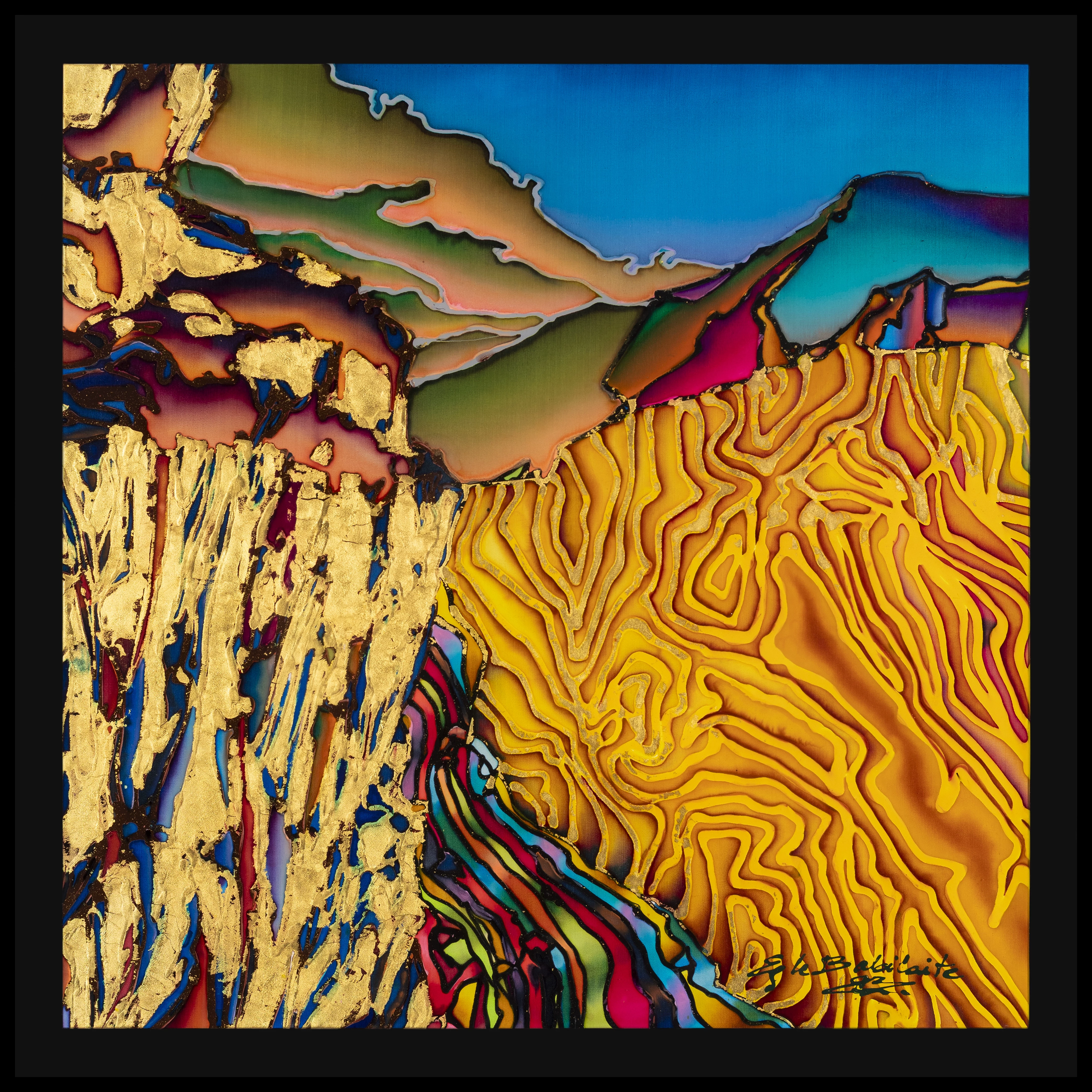 Author's technique,silk painting, 24 Karat gold plated, clear epoxy resin