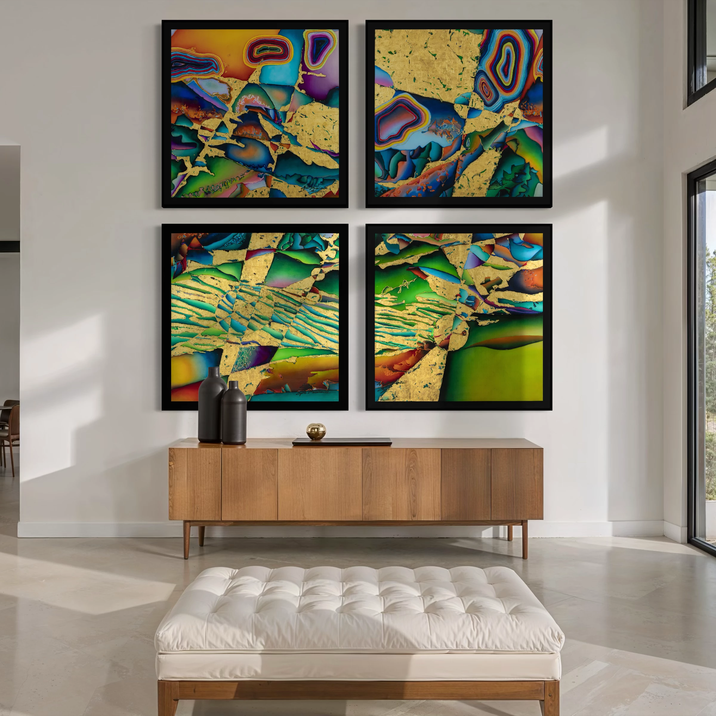 218 x 218 x 5 cm; 4 paintings -109 x 109 x 5 cm .