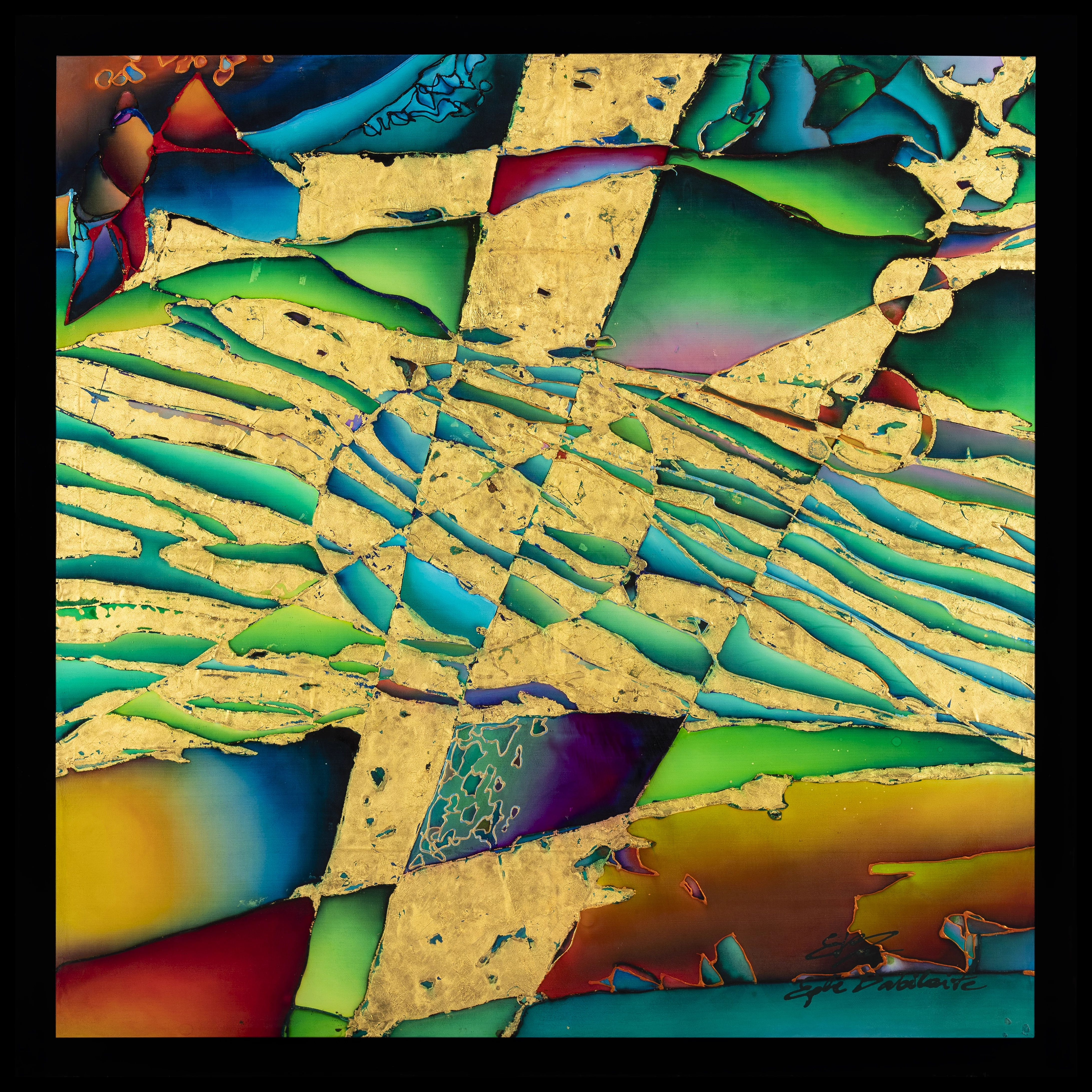 Author's technique,silk painting, 24 Karat gold plated, clear epoxy resin