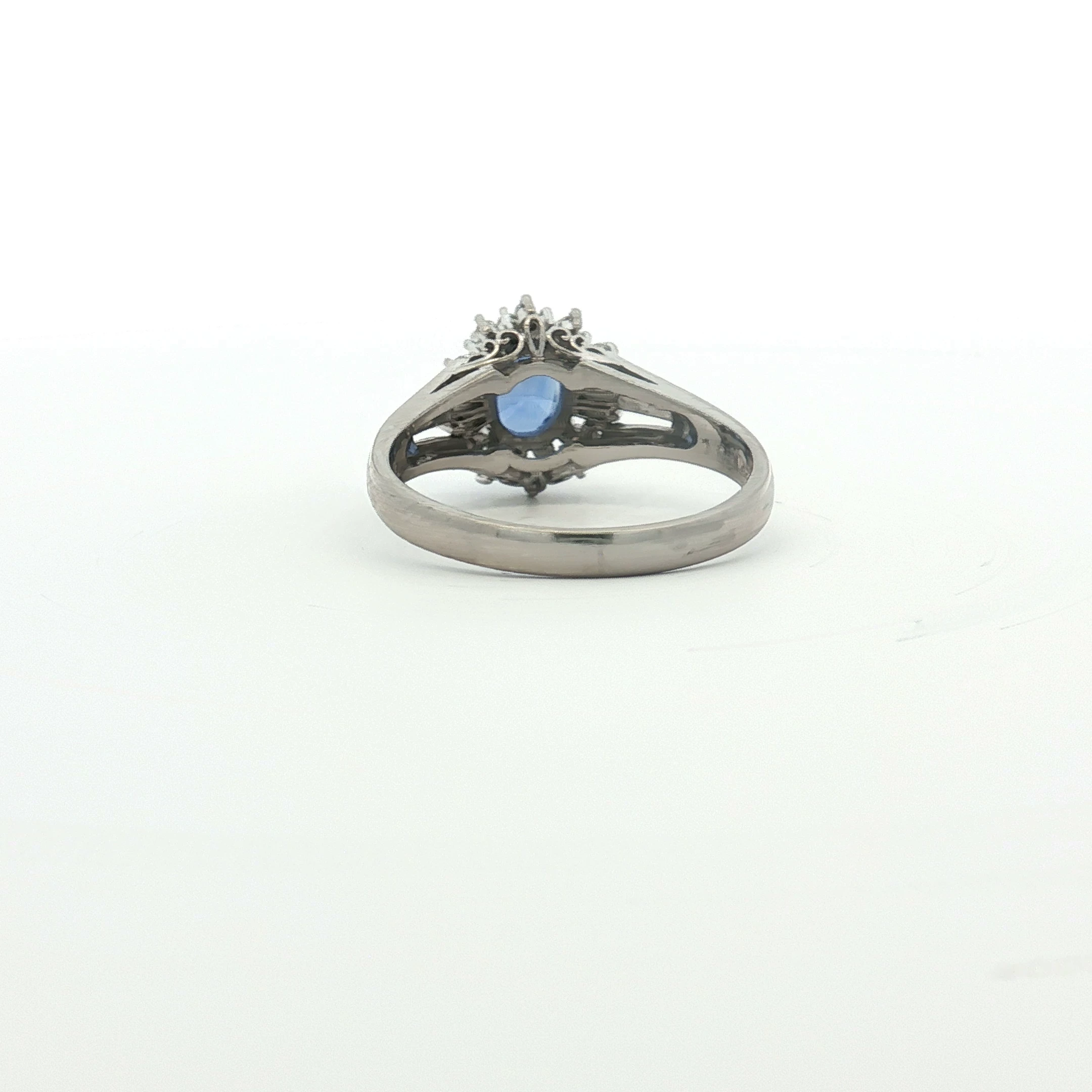 Indulge in the timeless elegance of this vintage-inspired multistone ring. Crafted in lustrous platinum, the ring features a mesmerizing oval-shaped sapphire in a rich blue hue. PLAT 1.08ct Sapphire...