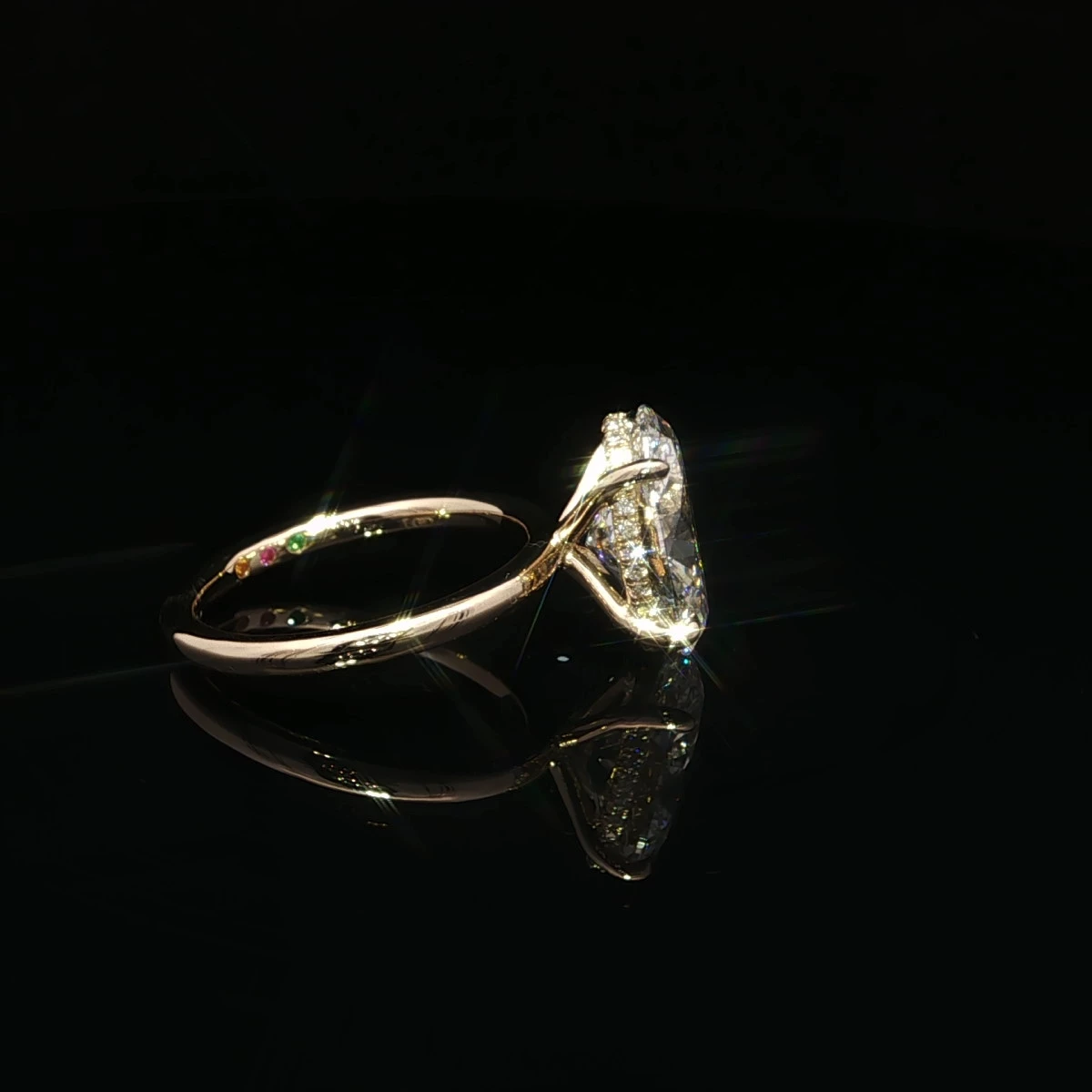 Exquisitely crafted in gold, this solitaire ring showcases a mesmerizing oval-cut diamond. Its brilliant cutting style accentuates the stone's natural brilliance, promising an enduring symbol of love ... Read More