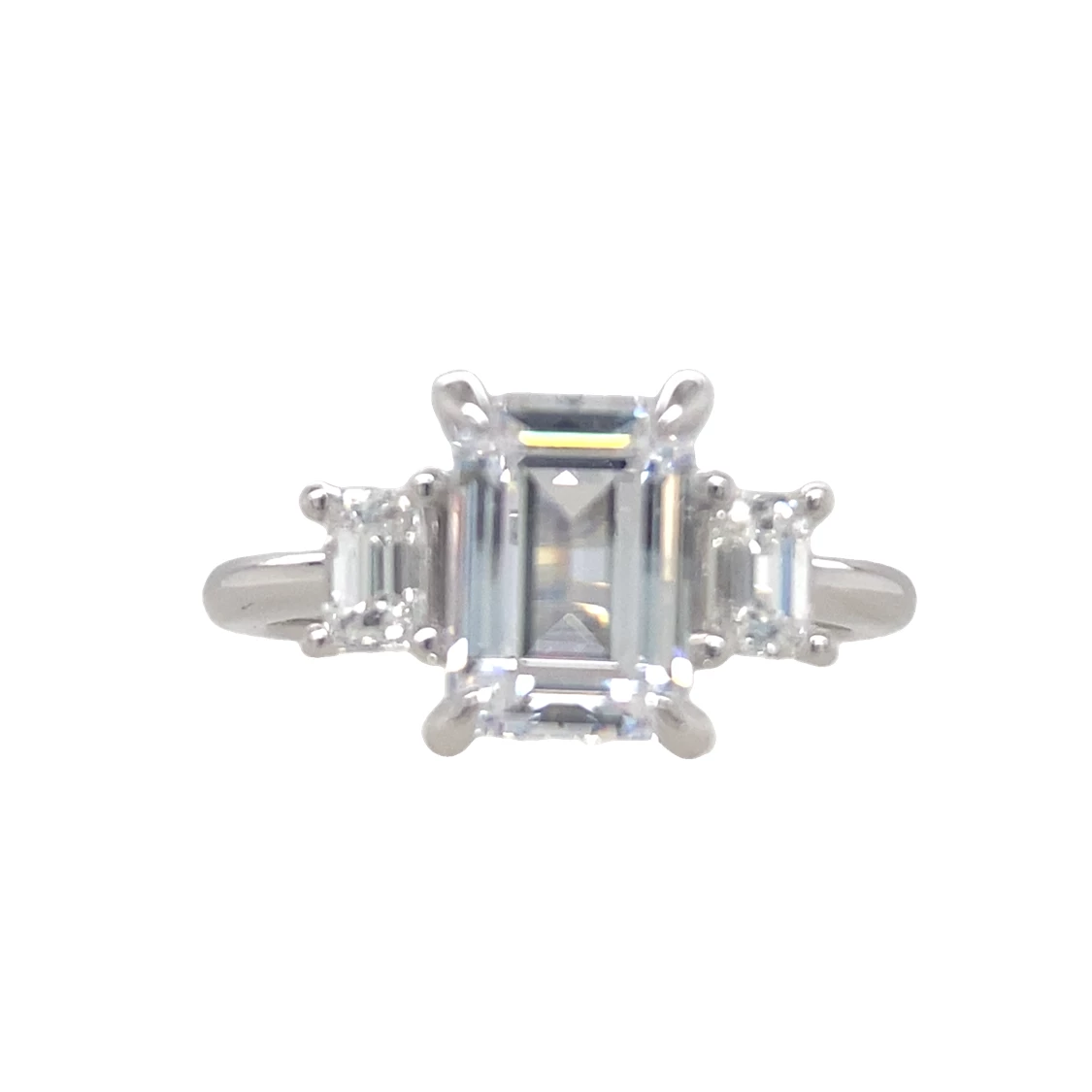 Exquisite solitaire ring showcasing an emerald-cut diamond. The diamond is set in a classic platinum mounting. This sophisticated ring is perfect for engagements, anniversaries, or as a luxurious trea... Read More