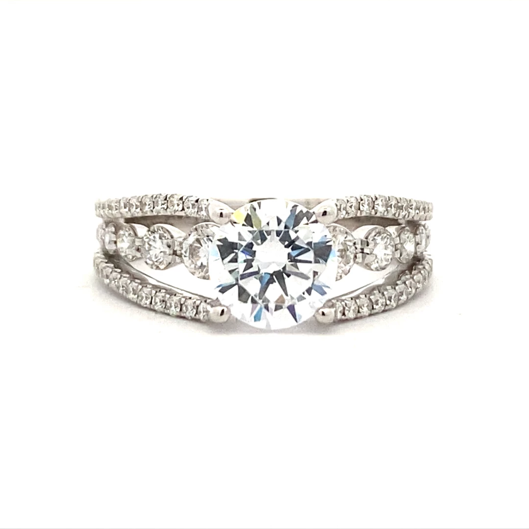 Exquisite multistone ring, crafted in white gold plated silver, featuring a round brilliant cut diamond as the centerpiece. The ring is embellished with smaller diamonds set along the band. This elega... Read More